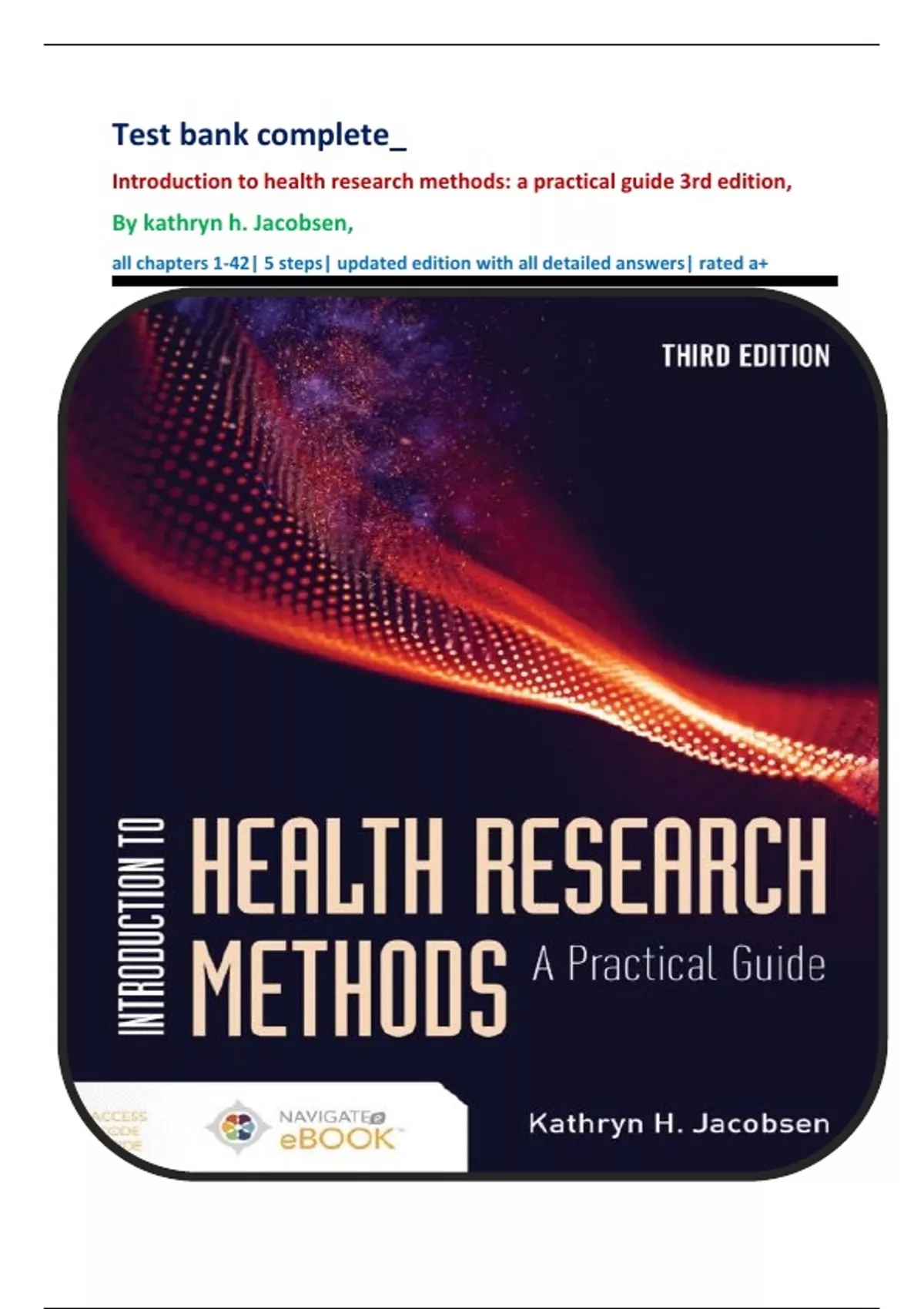 kathryn h. Jacobsen: introduction to health research methods: a practical guide 3rd edition, test bank