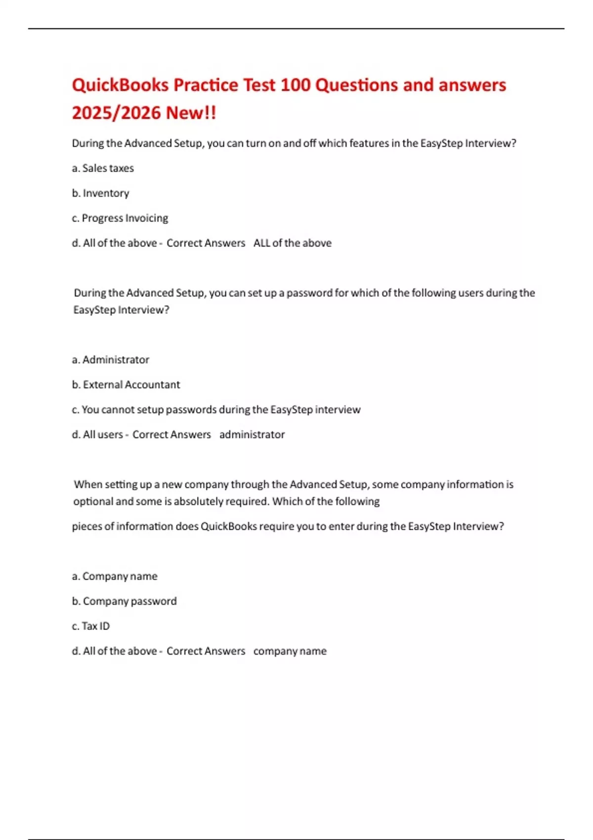 d. All of the above - Correct Answers company name