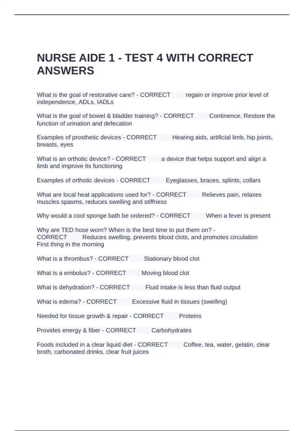 NURSE AIDE 1 - TEST 4 WITH CORRECT