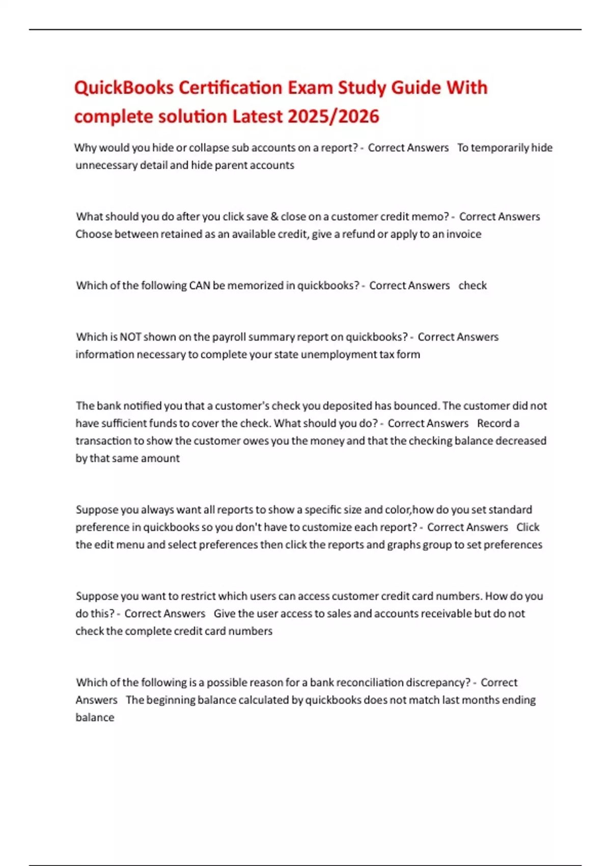 QuickBooks Certification Exam Study Guide With complete solution Latest 2025/2026QuickBooks Certification Exam Study Guide With complete solution Latest 2025/2026QuickBooks Certification Exam Study Guide With complete solution Latest 2025/2026QuickBooks Certification Exam Study Guide With complete solution Latest 2025/2026QuickBooks Certification Exam Study Guide With complete solution Latest 2025/2026QuickBooks Certification Exam Study Guide With complete solution Latest 2025/2026