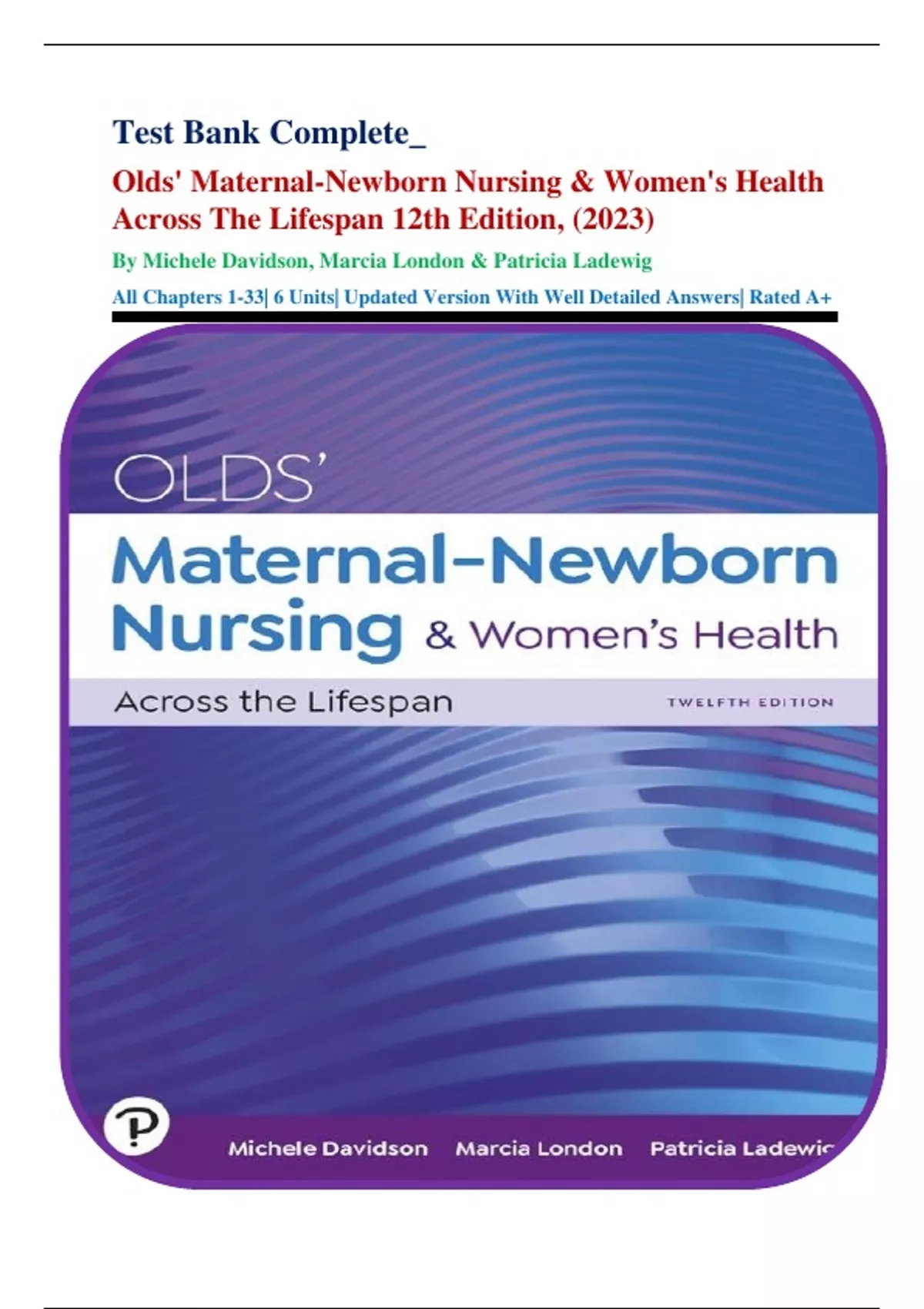 Test bank complete_ Olds' maternal-newborn nursing & women's health across the lifespan 12th edition, (2023) By michele davidson, marcia london & patricia ladewig all chapters 1-33| 6 units| updated version with well detailed answers| rated