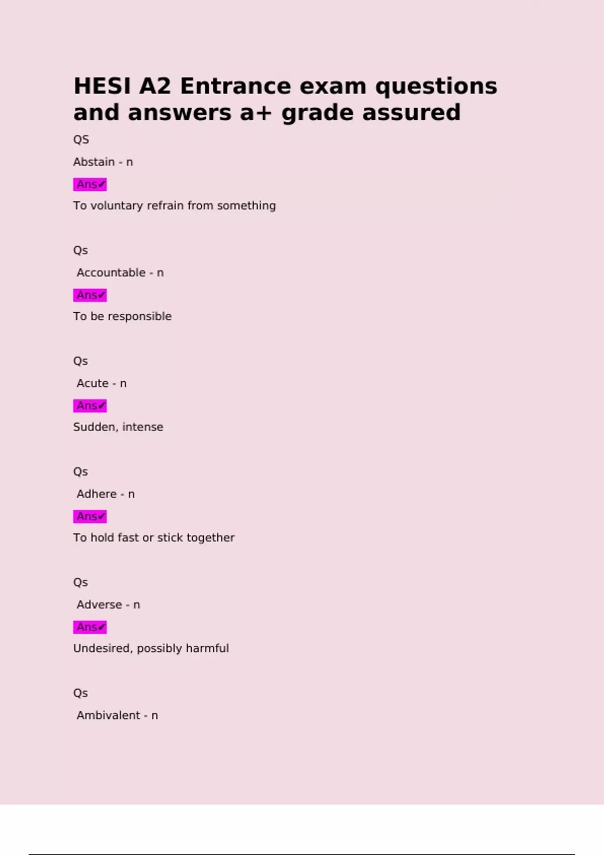 and answers a+ grade assured