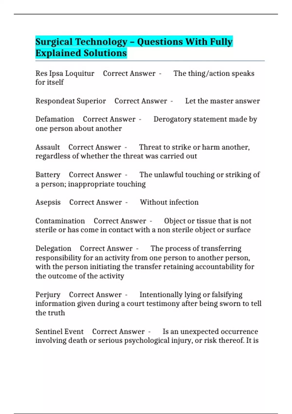 Surgical Technology – Questions With Fully Explained Solutions