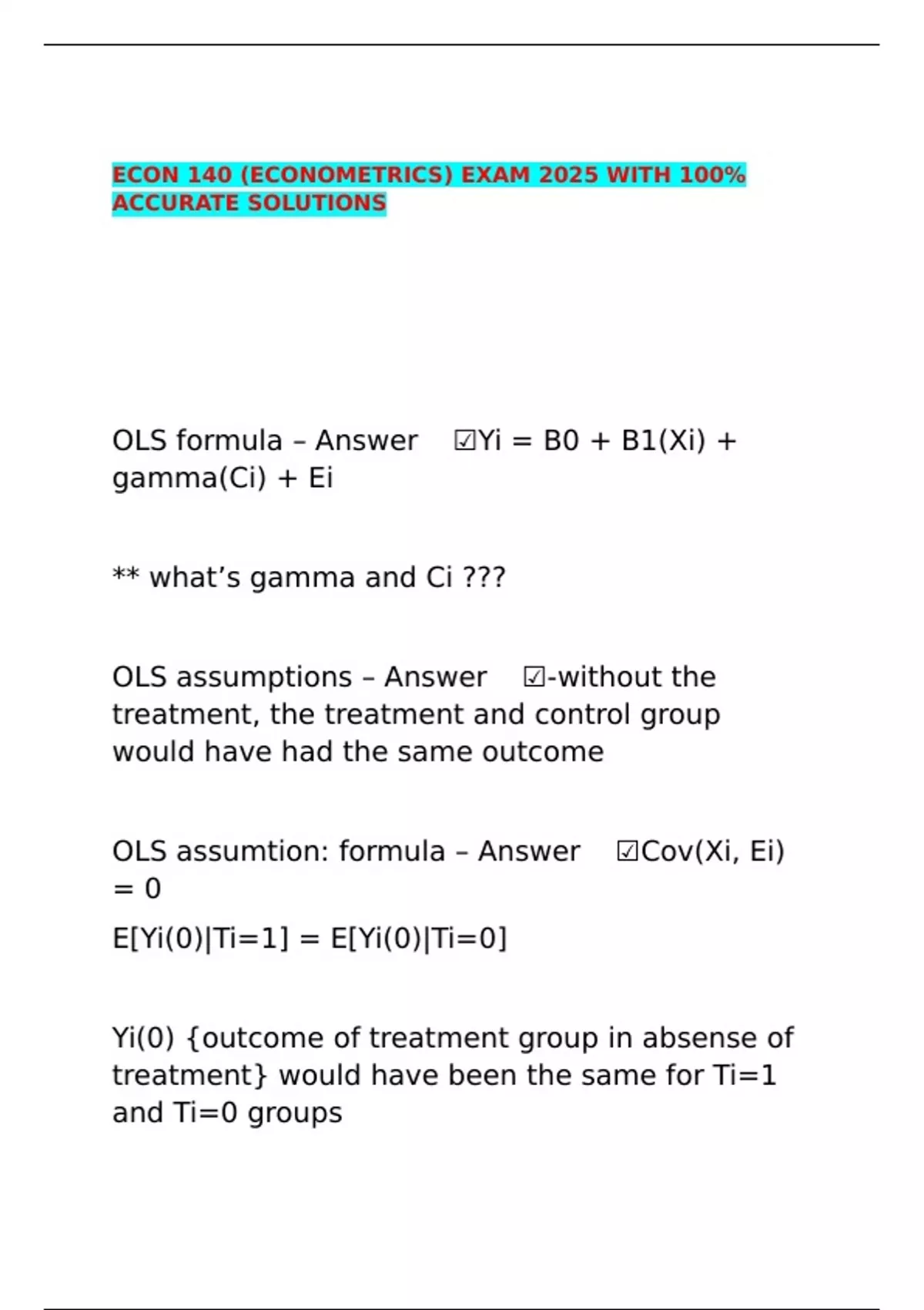 ECON 140 (ECONOMETRICS) EXAM 2025 WITH 100%