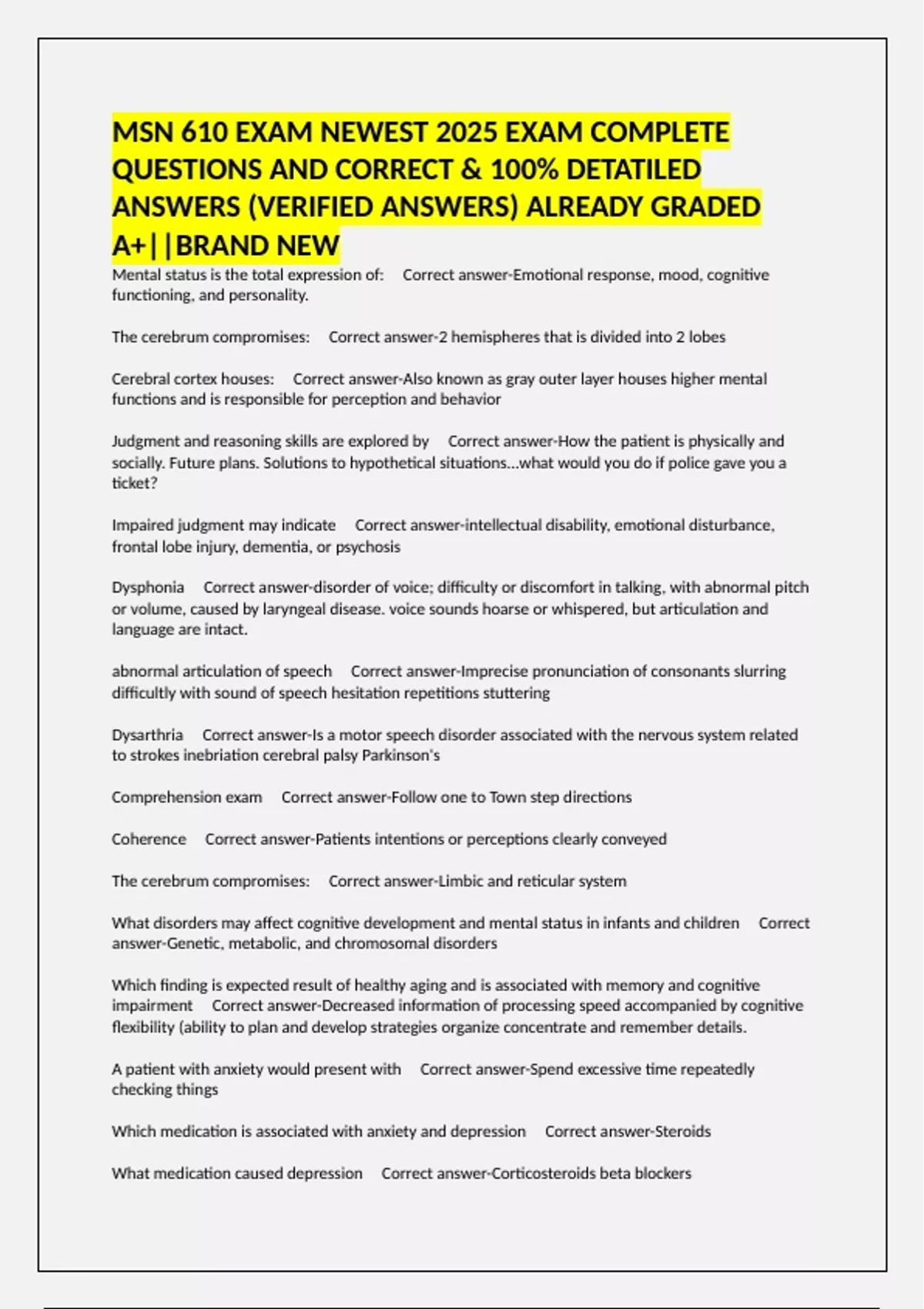 QUESTIONS AND CORRECT & 100% DETATILED