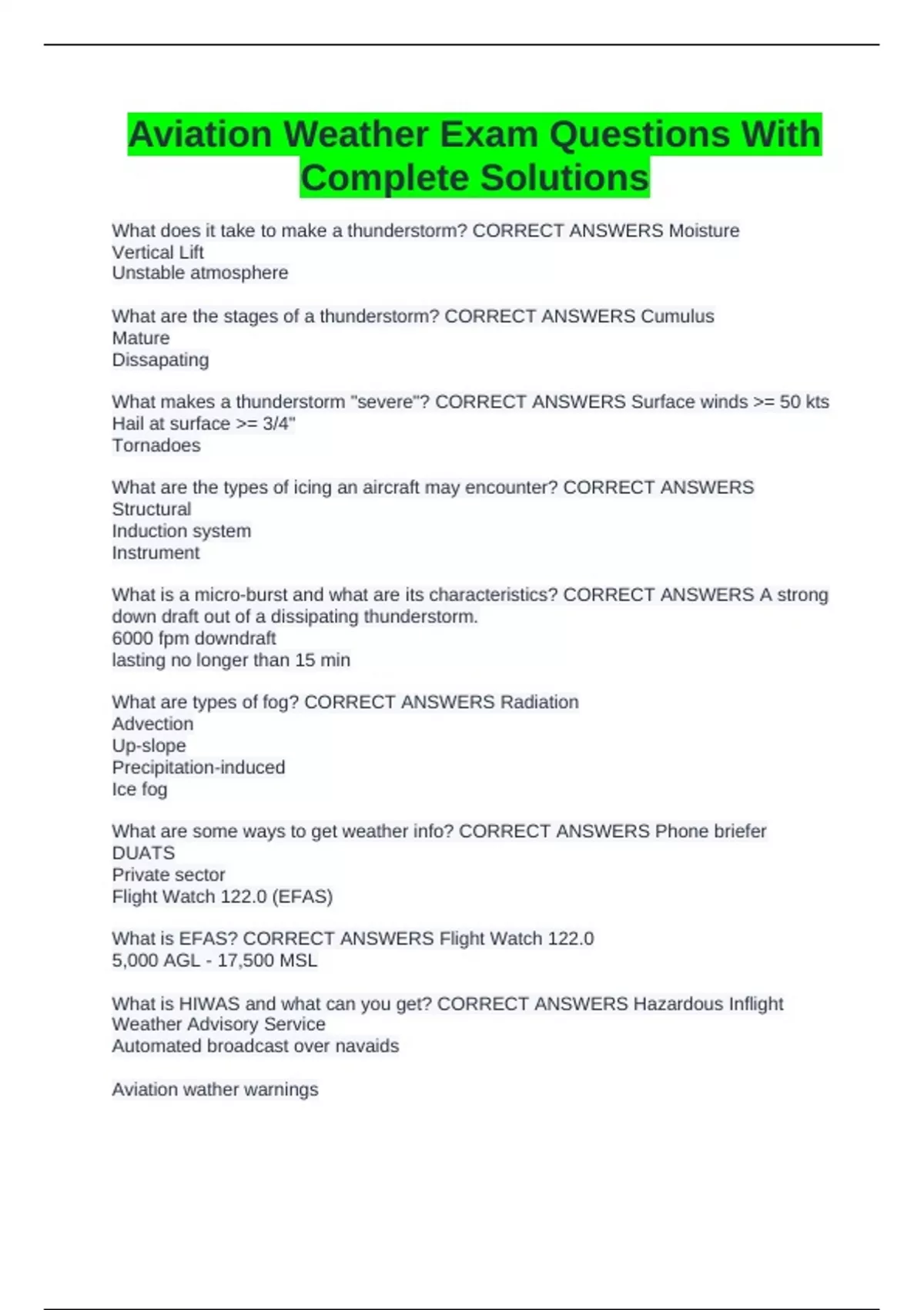 What makes a thunderstorm "severe"? CORRECT ANSWERS Surface winds >= 50 kts