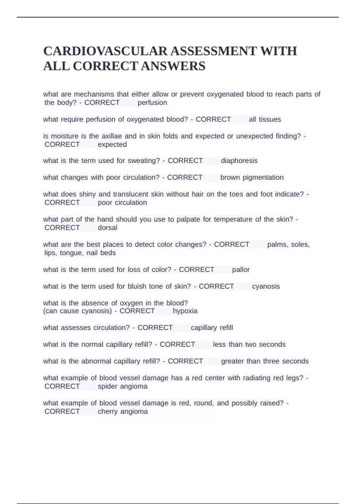 what fassesses fcirculation? f- fCORRECT✅✅capillary frefill