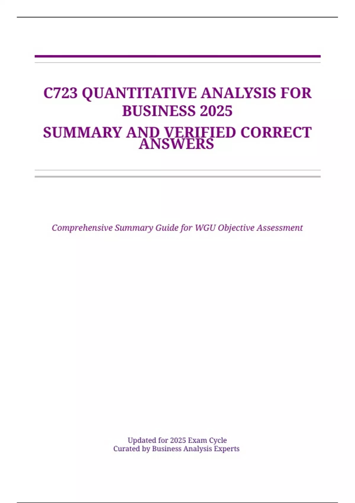,C723 Quantitative Analysis for Business Summary 2025 July 4, 2025