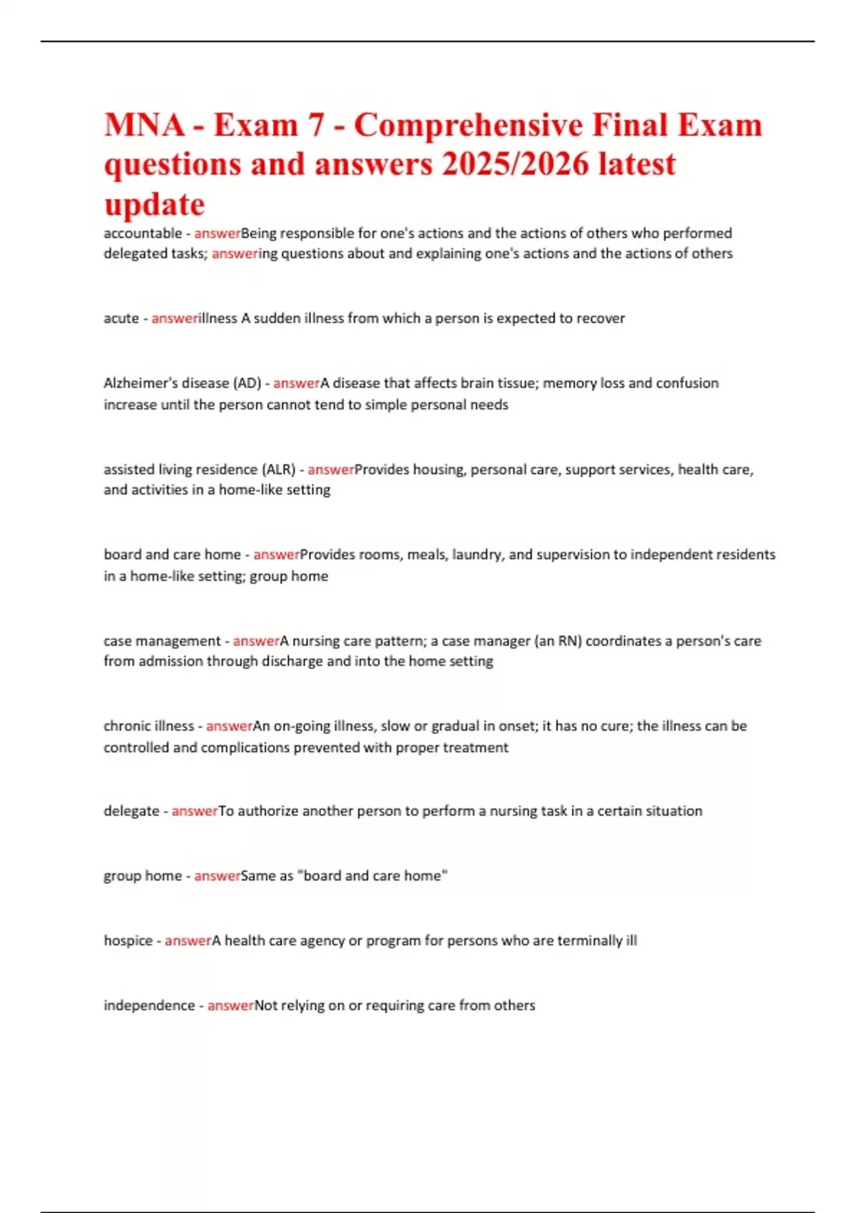 MNA - Exam 7 - Comprehensive Final Exam