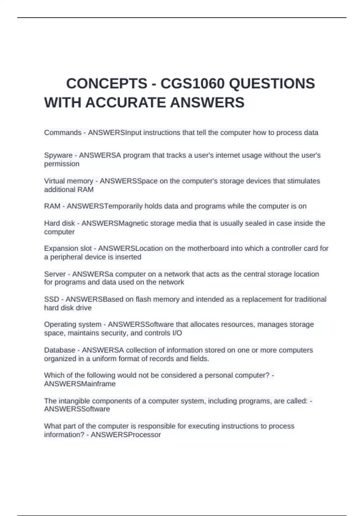 Operating system - ANSWERSSoftware that allocates resources, manages storage