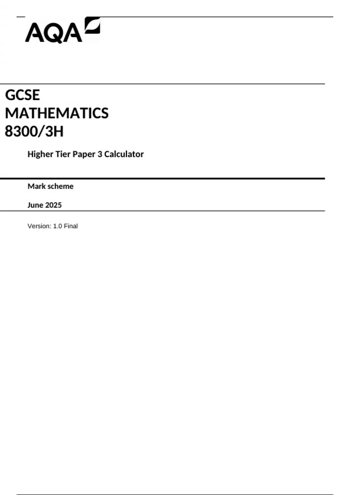 , MARK SCHEME – GCSE MATHEMATICS – 8300/3H – JUNE 2025