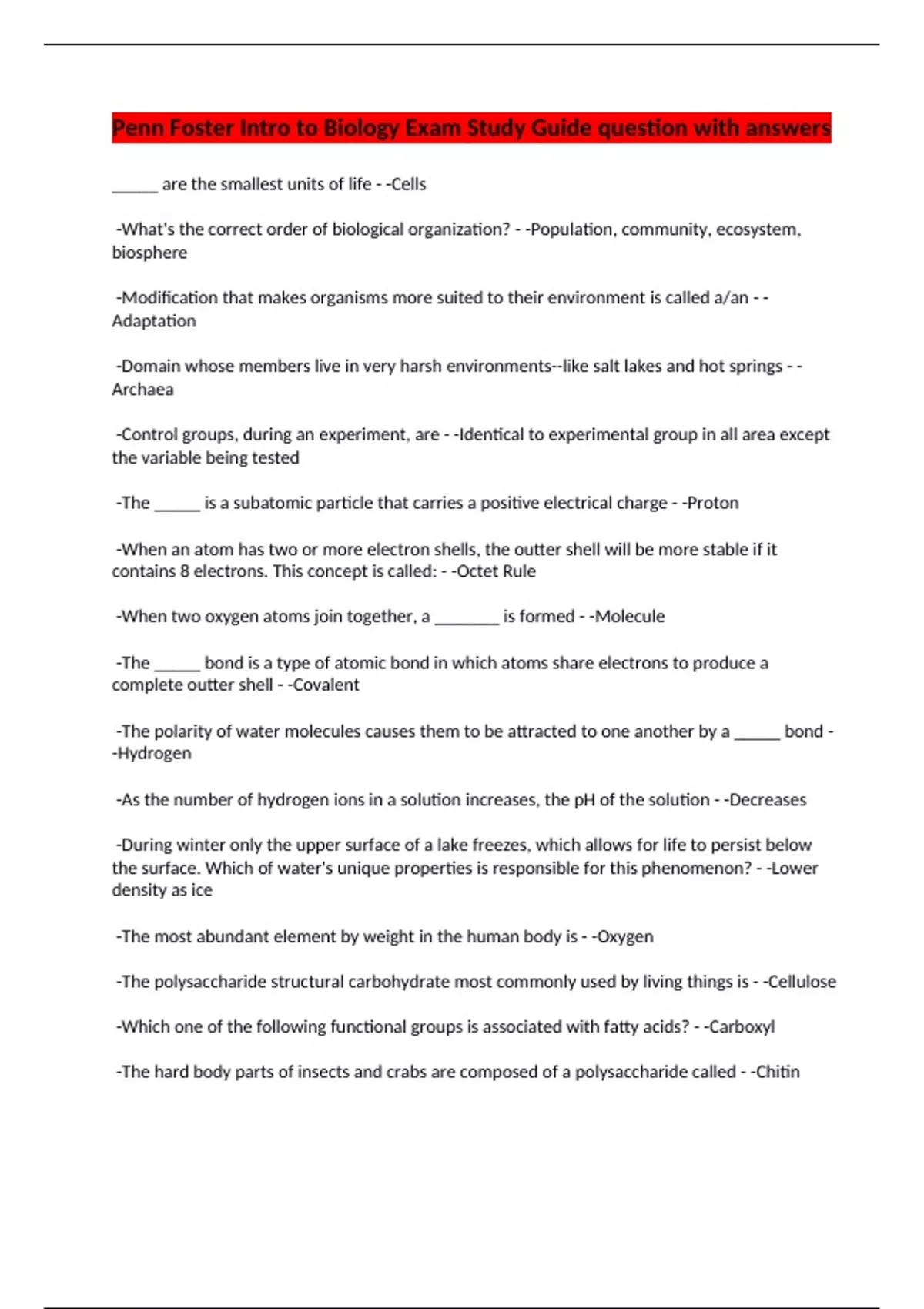 Penn Foster Intro to Biology Exam Study Guide question with answers