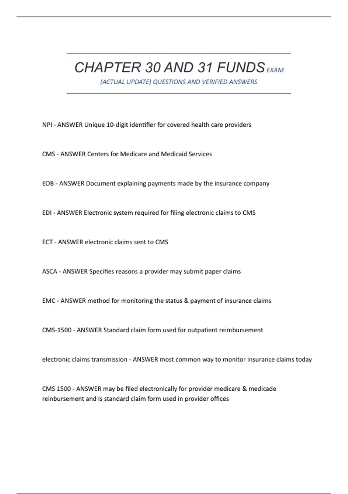 EDI - ANSWER Electronic system required for filing electronic claims to CMS