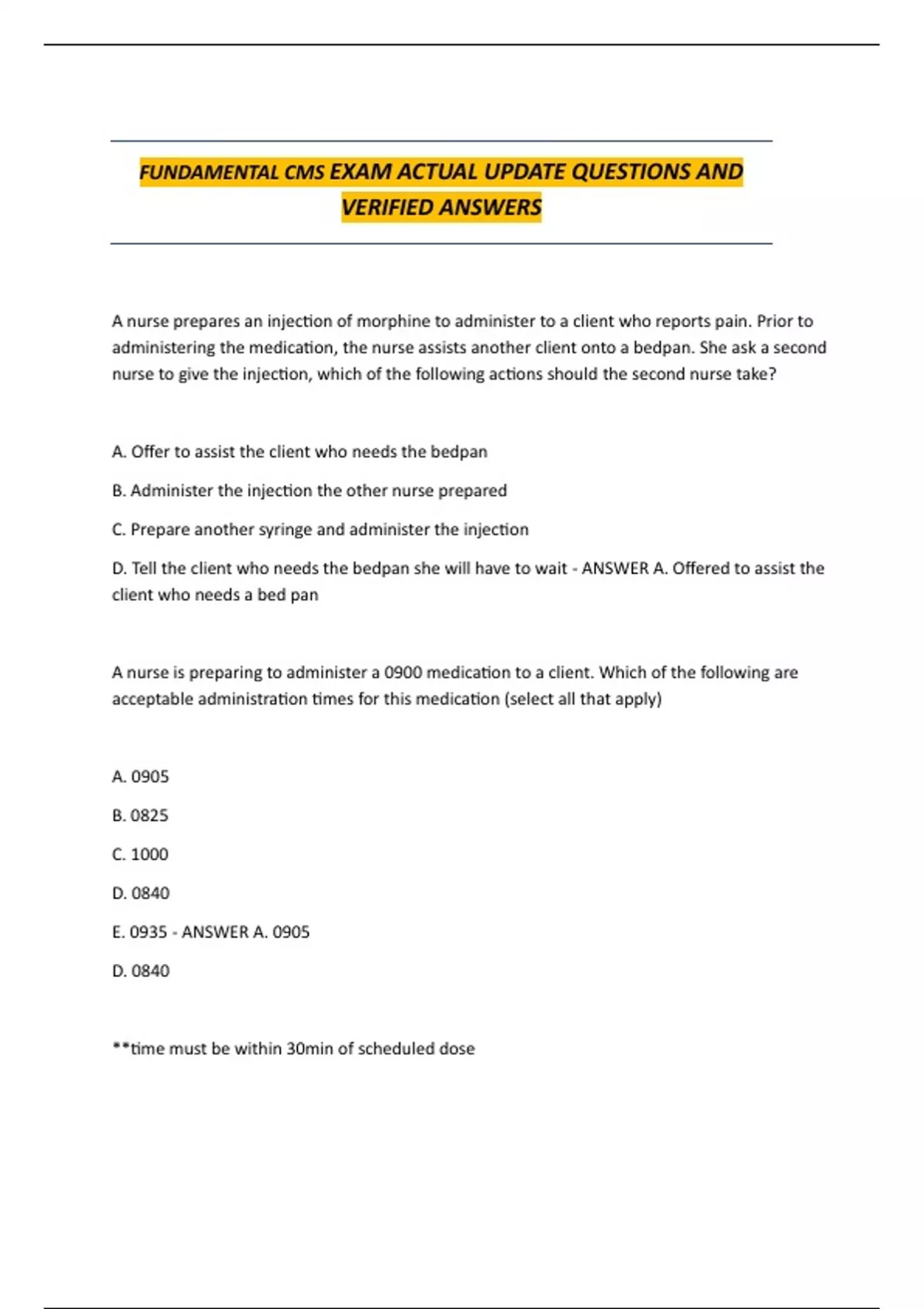 FUNDAMENTAL CMS EXAM ACTUAL UPDATE QUESTIONS AND VERIFIED ANSWERS.