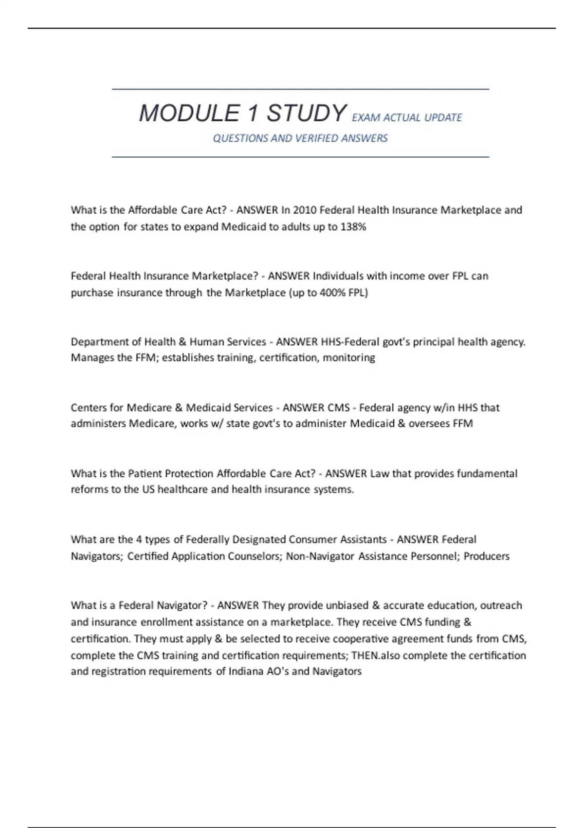 MODULE 1 STUDY EXAM ACTUAL UPDATE