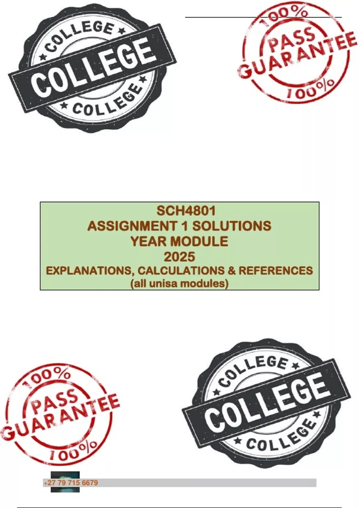 SCH4801 Assignment 1 (QUESTIONS & ANSWERS) Year Module - 2025