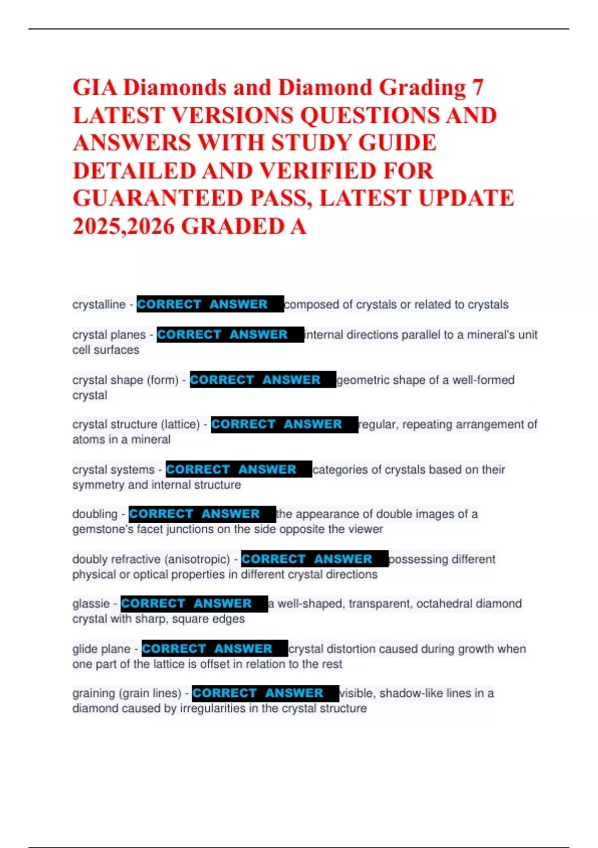 CORRECT ANSWER crystal