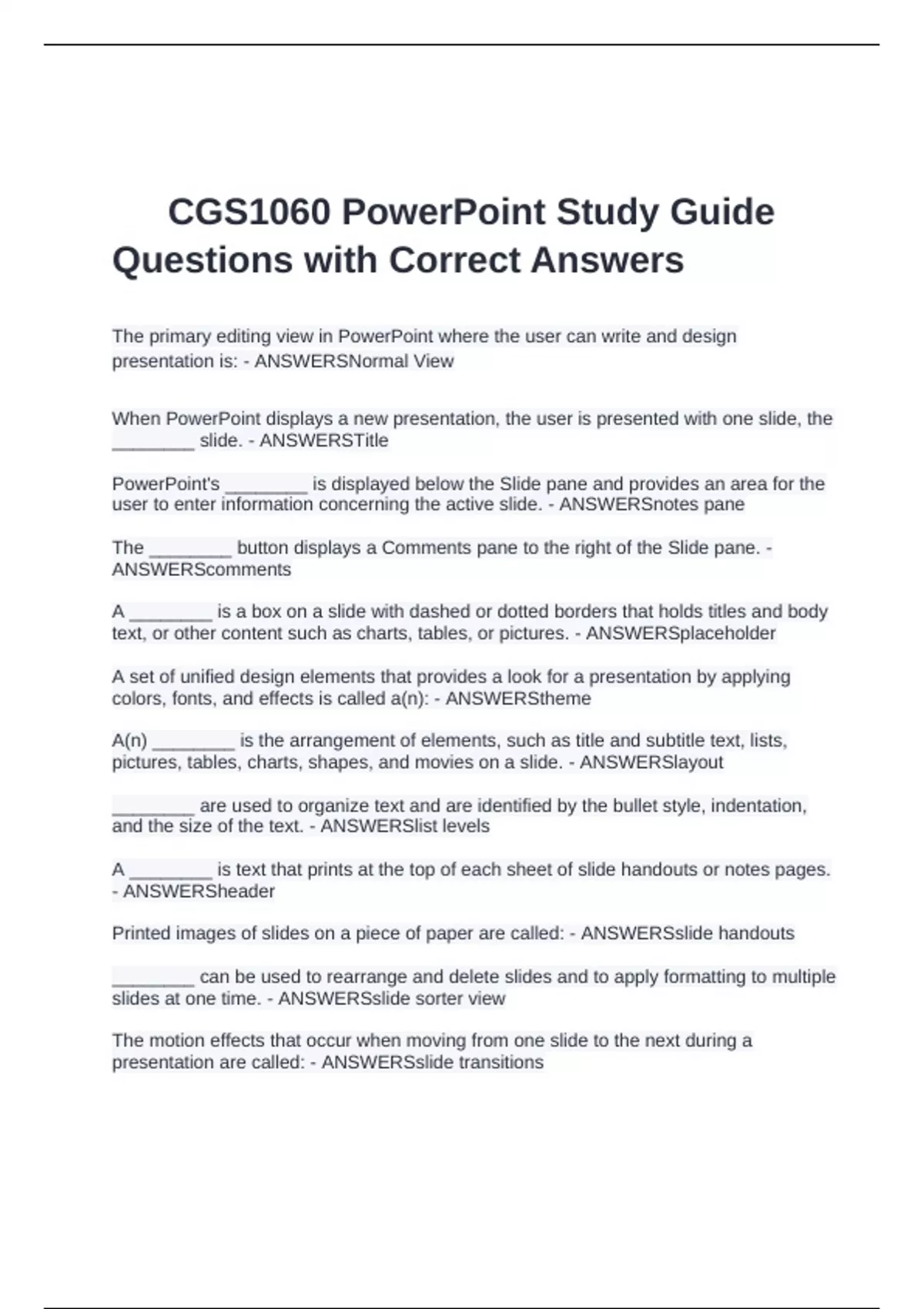 CGS1060 PowerPoint Study Guide Questions with Correct Answers