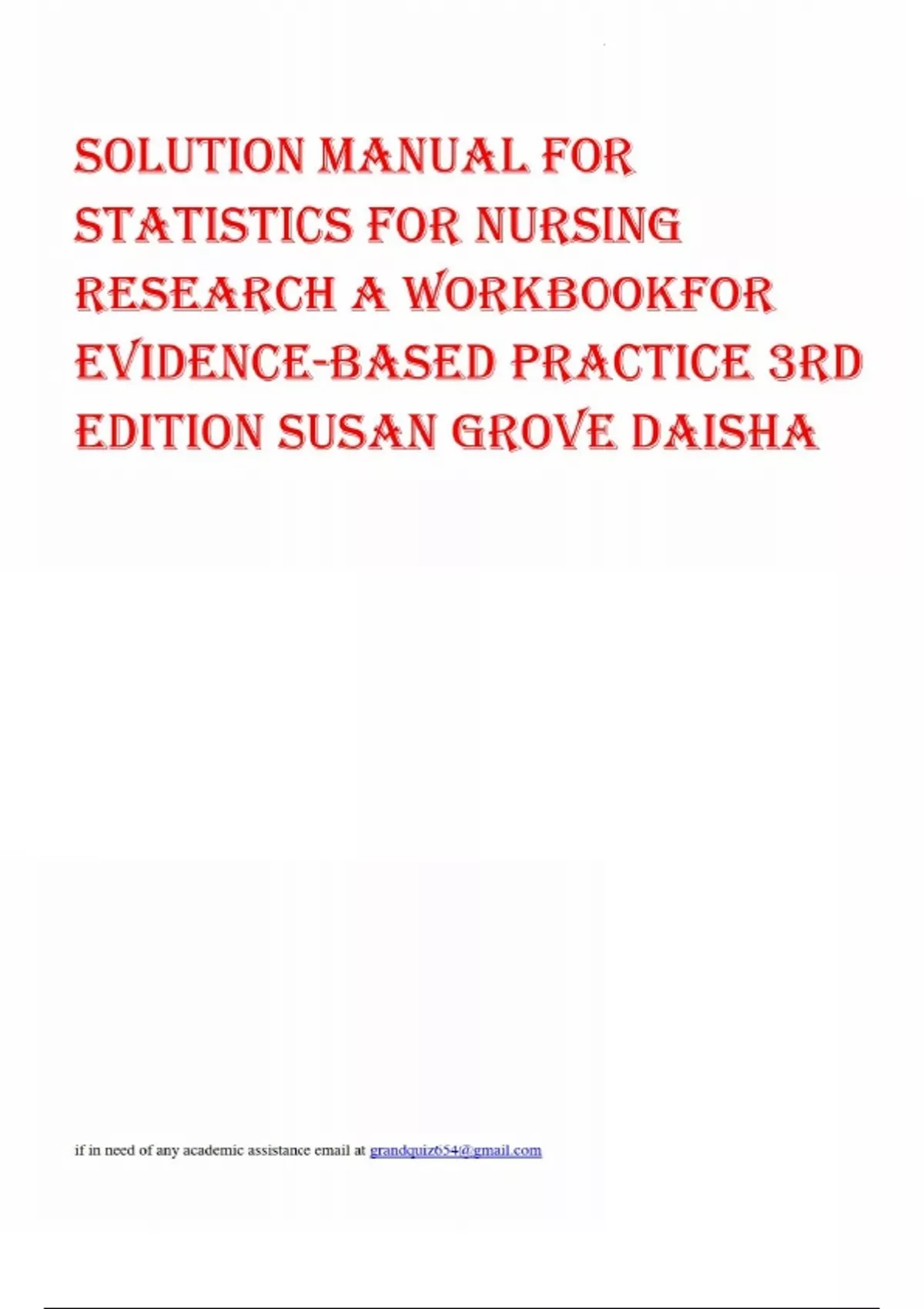 Solution Manual for Statistics for Nursing Research A Workbook for Evidence-Based Practice 3rd Edition Susan Grove Daisha.pdf