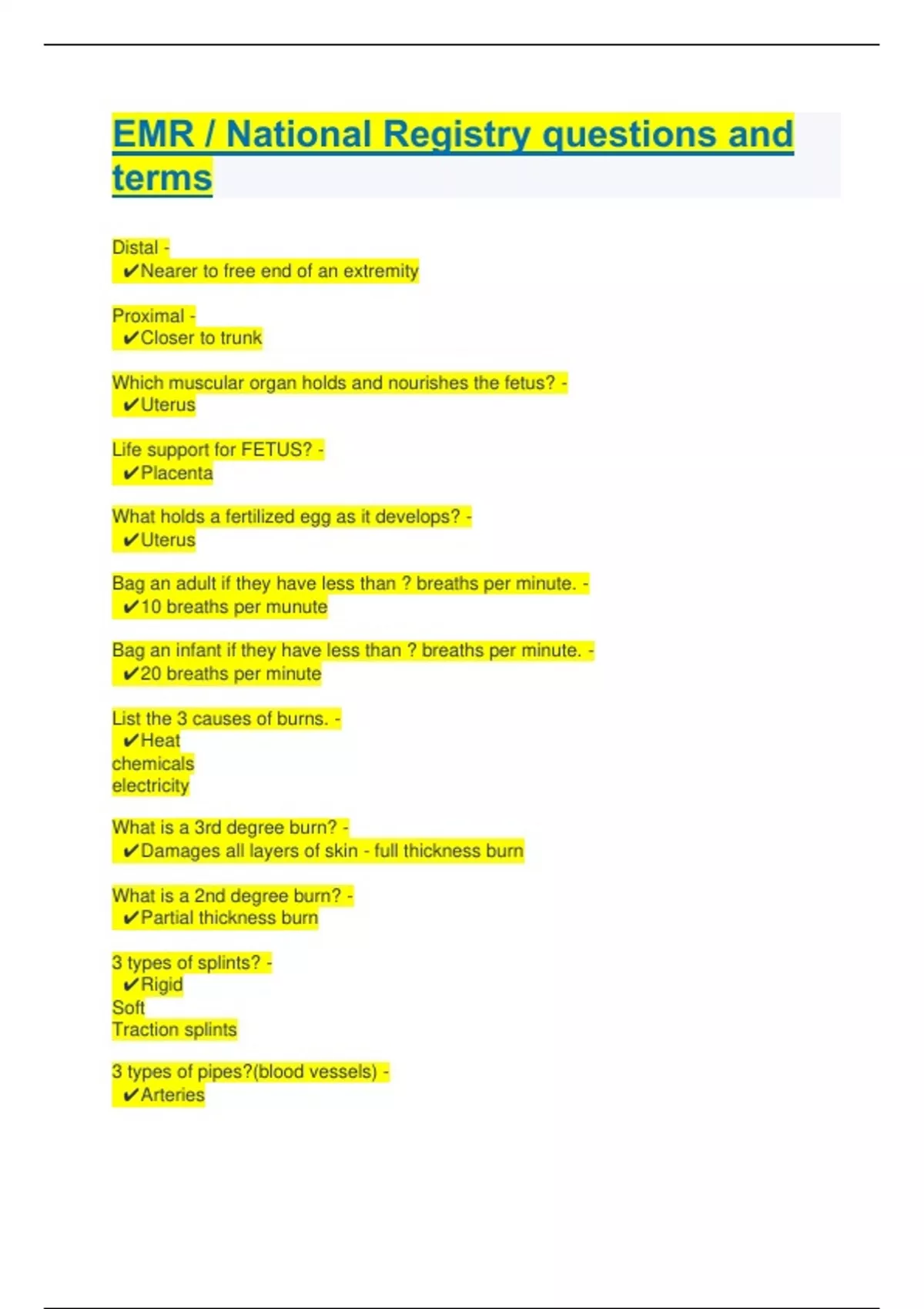 EMR / National Registry questions and