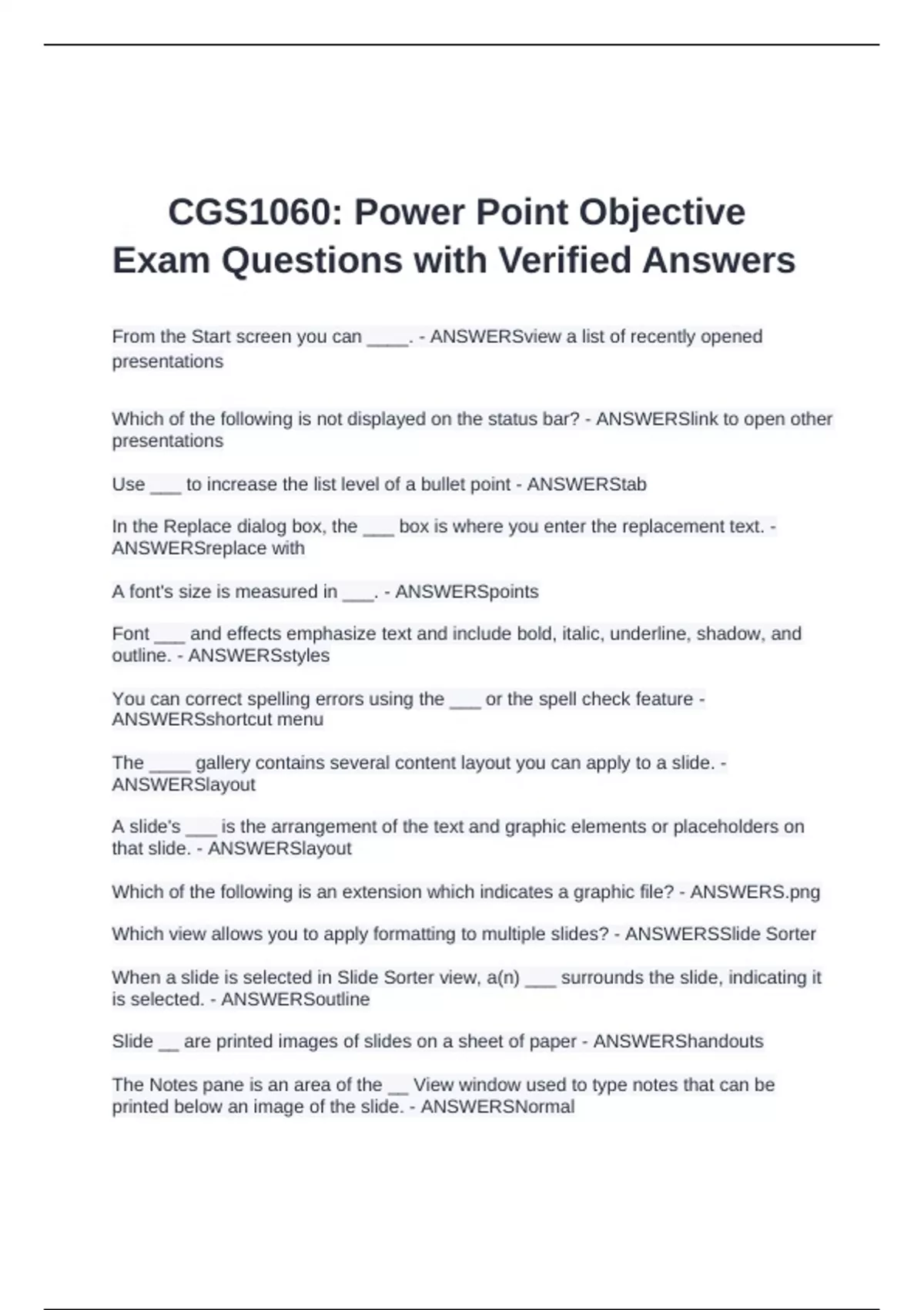 placeholders. - ANSWERSstyles