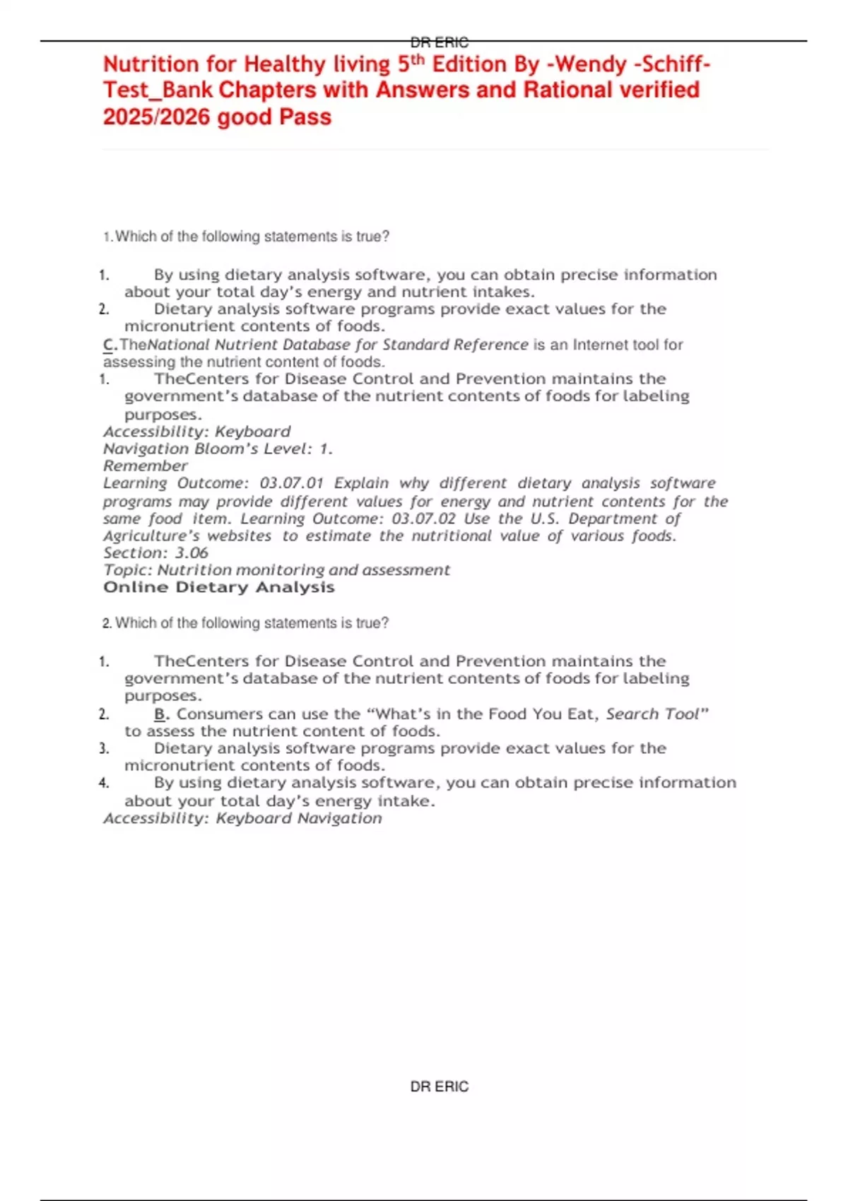 HEALTH EATING ] TEST BANK'S NUTRITION FOUNDATIONS COMPLETE,CLEAR,VERIFIED TEST BANK!!!TEST BANK!!!WENDY SCHIFF TEST BANK TEST BANK !!!INUTRITION FOUNDATION S !!!202/2026 ALL CAHPTERS ....BE 110% ASSURED TO PASS YOUR EXAMS !!!DR ERIC!!!DR ER