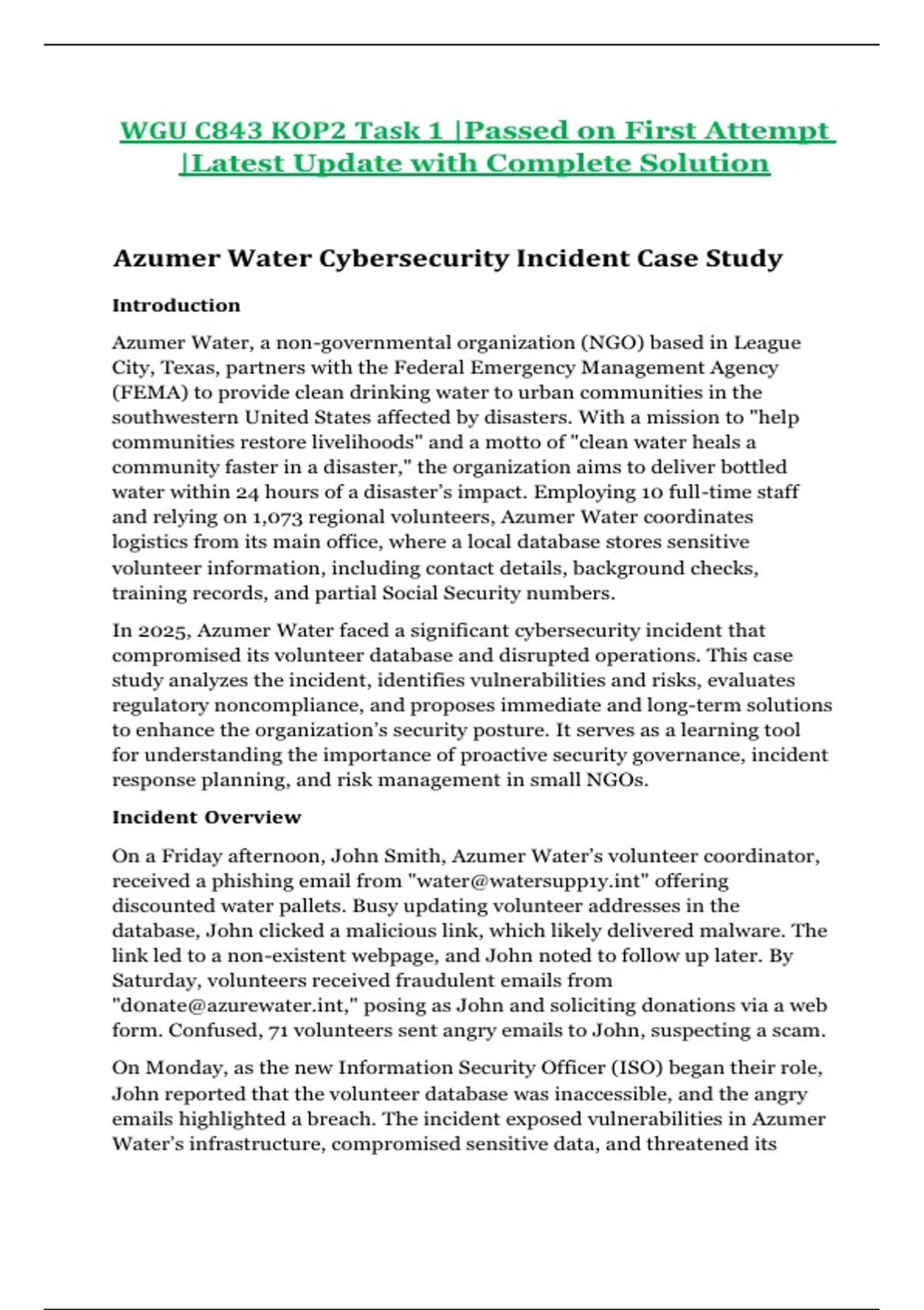 WGU C843 KOP2 Task 1 |Passed on First Attempt