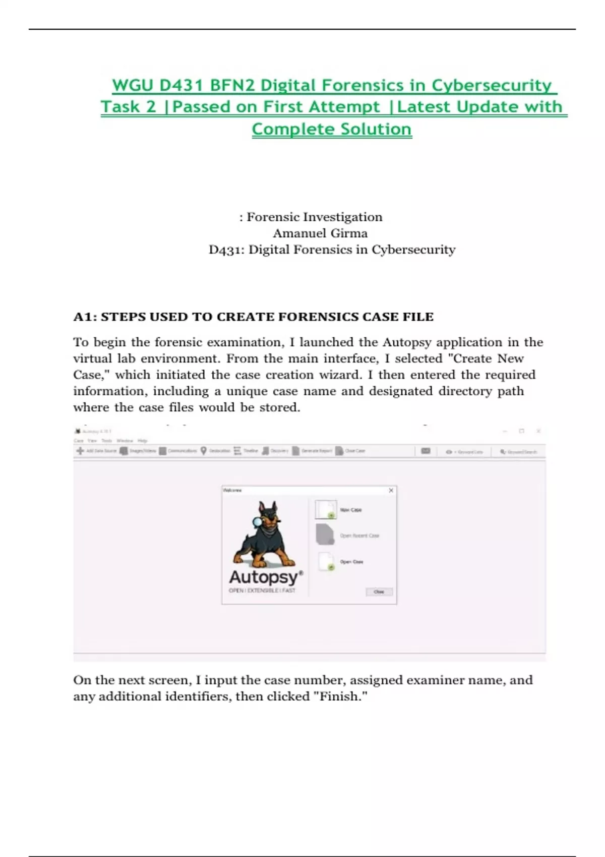A1: STEPS USED TO CREATE FORENSICS CASE FILE