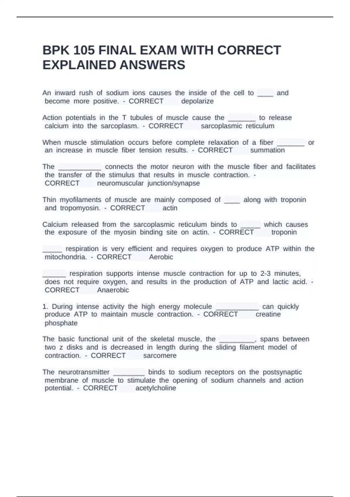 BPK 105 FINAL EXAM WITH CORRECT
