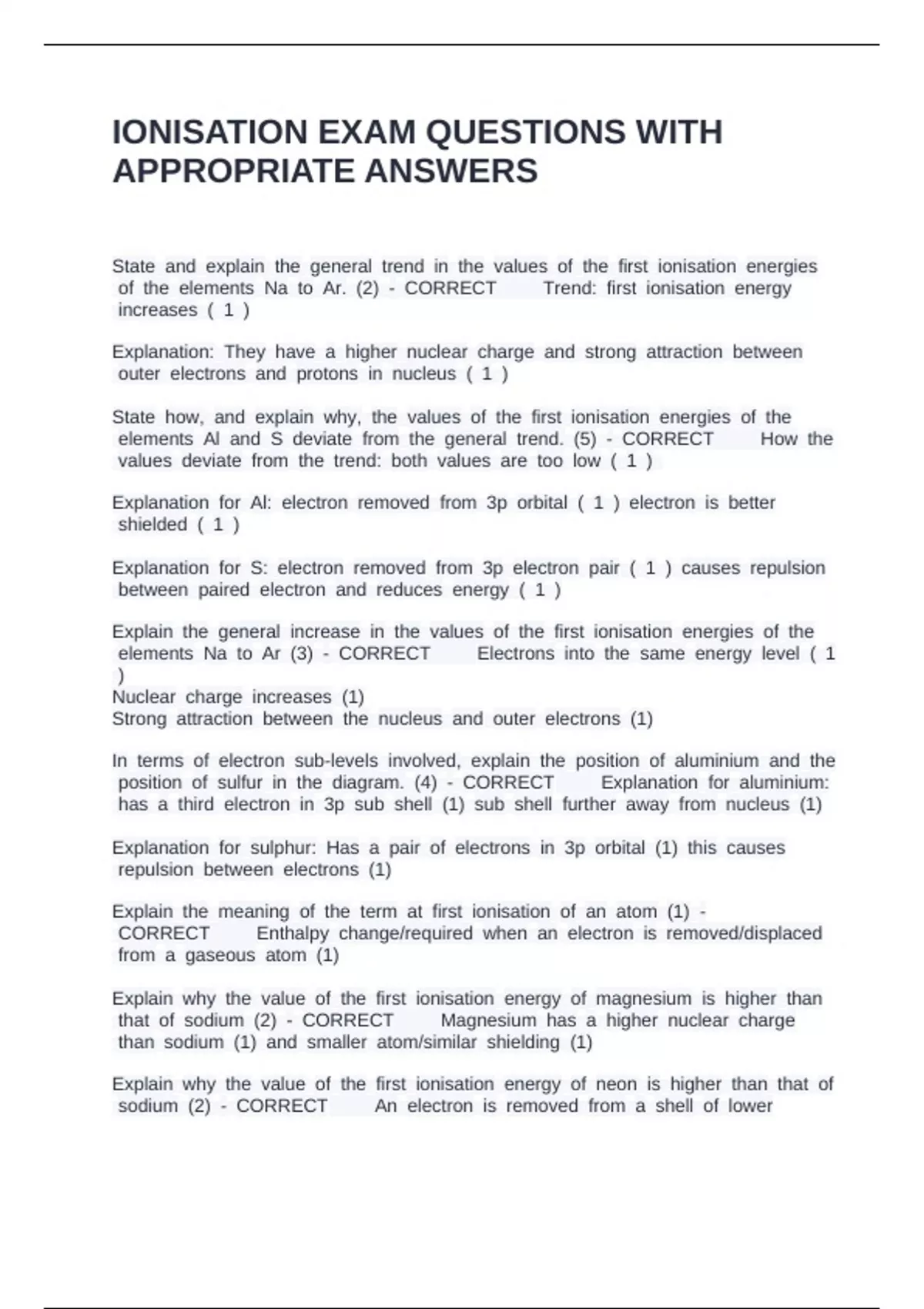 IONISATION EXAM QUESTIONS WITH