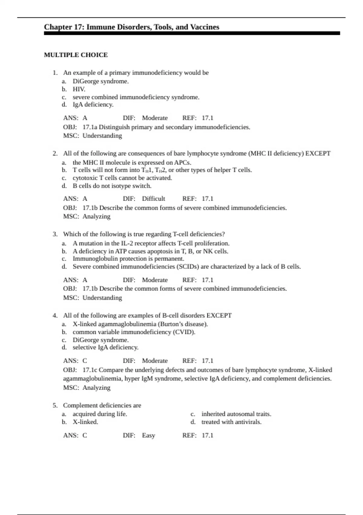 OBJ: 17.1b Describe the common forms of severe combined immunodeficiencies.