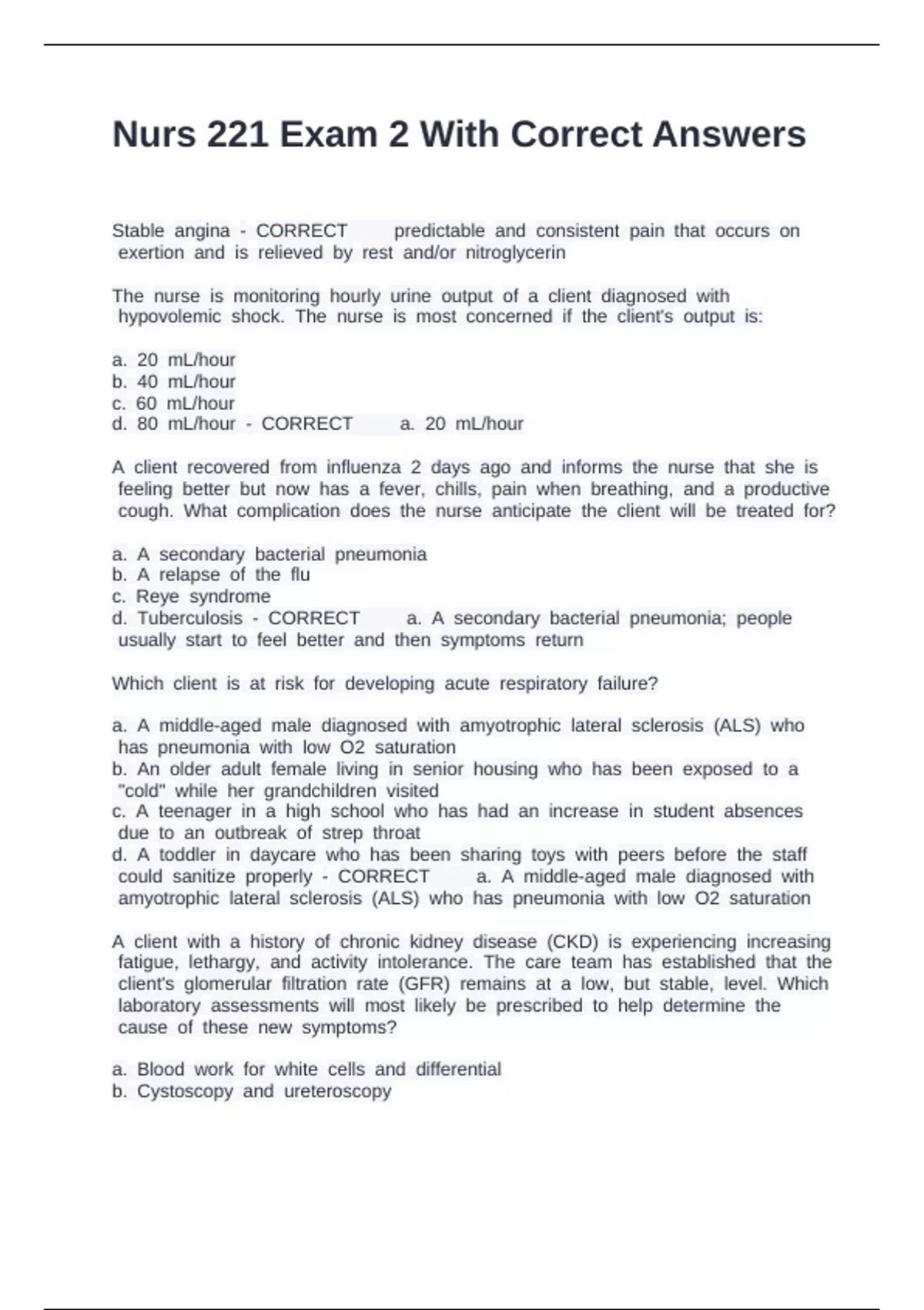 Nurs 221 Exam 2 With Correct Answers