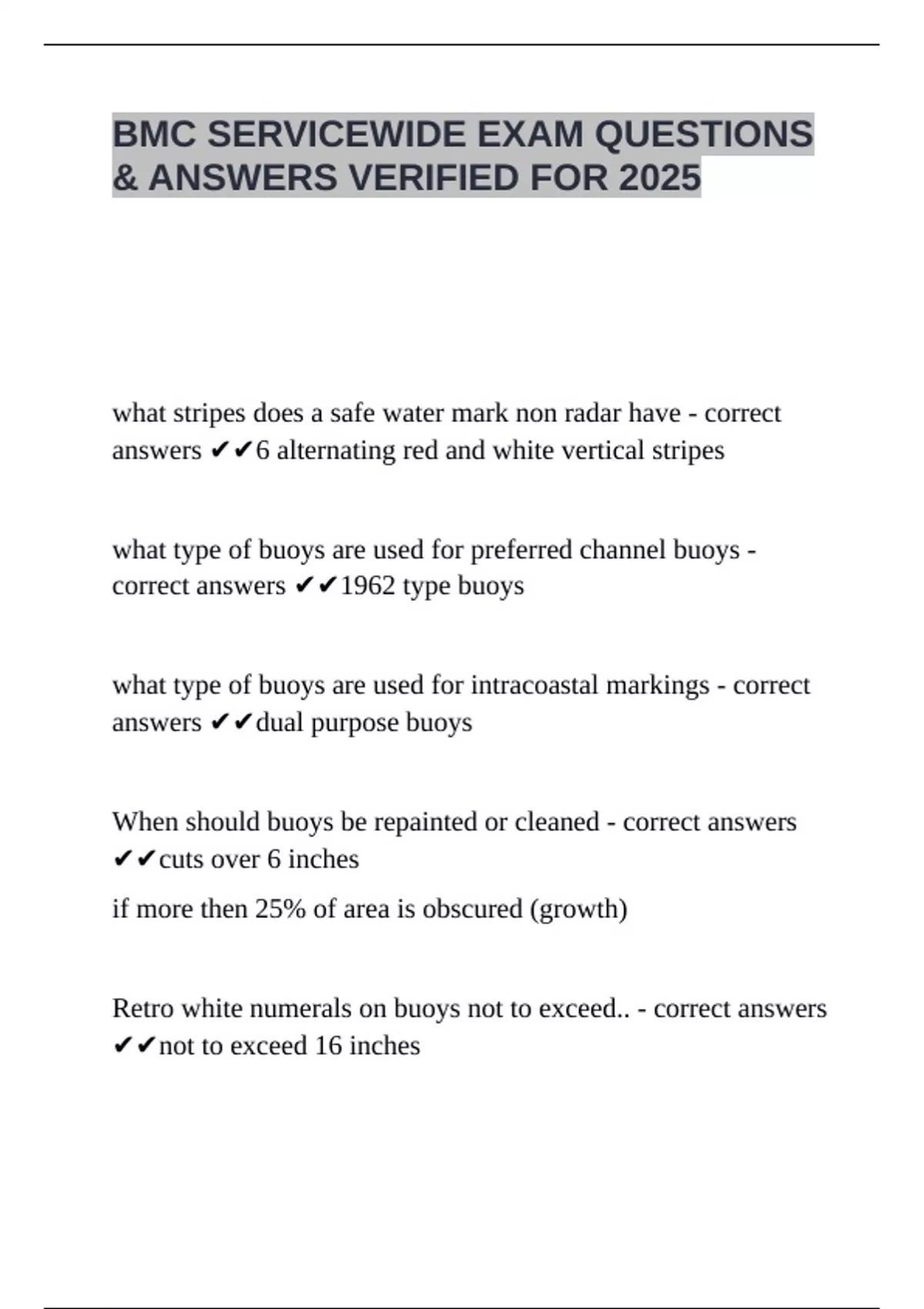 When should buoys be repainted or cleaned - correct answers