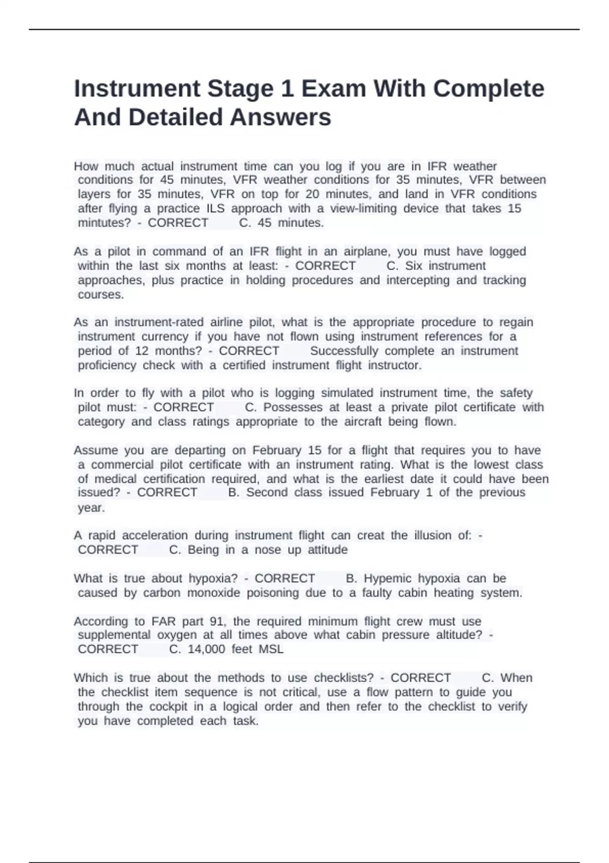 Instrument Stage 1 Exam With Complete