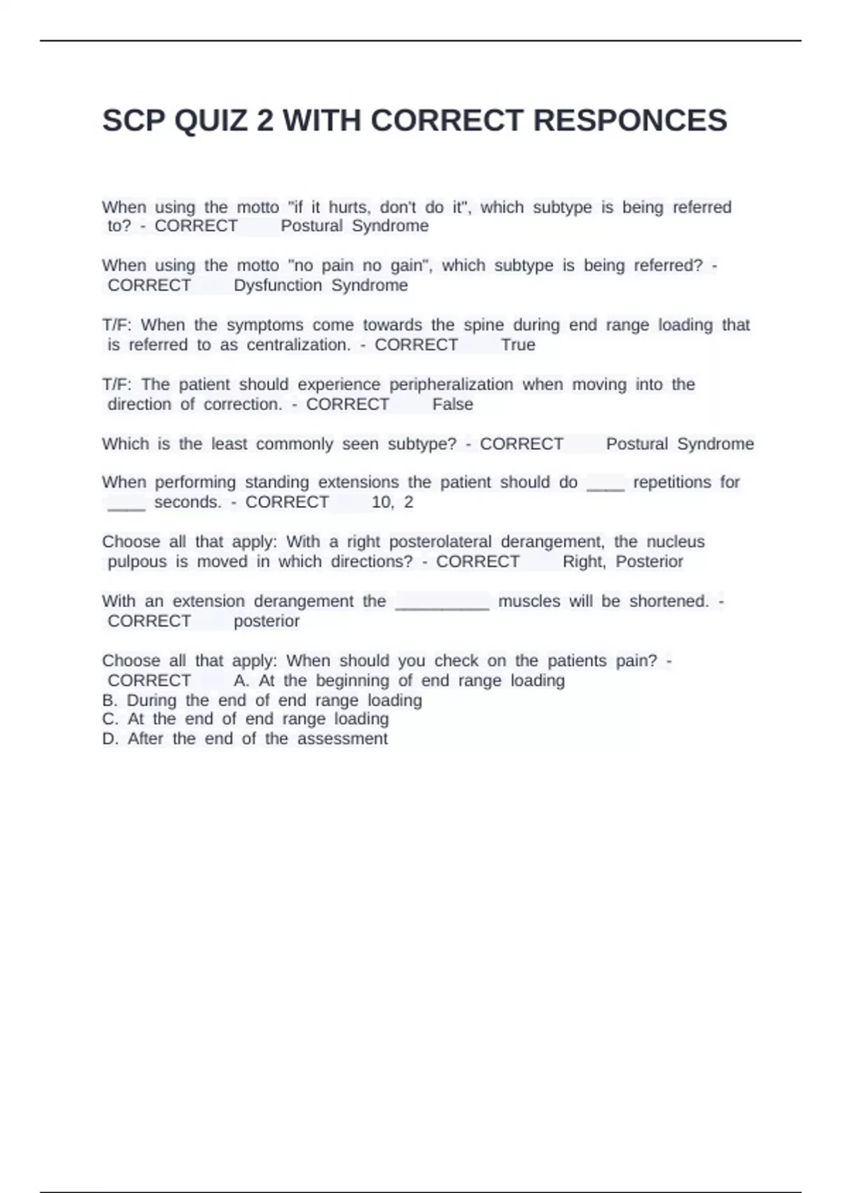 SCP QUIZ 2 WITH CORRECT RESPONCES