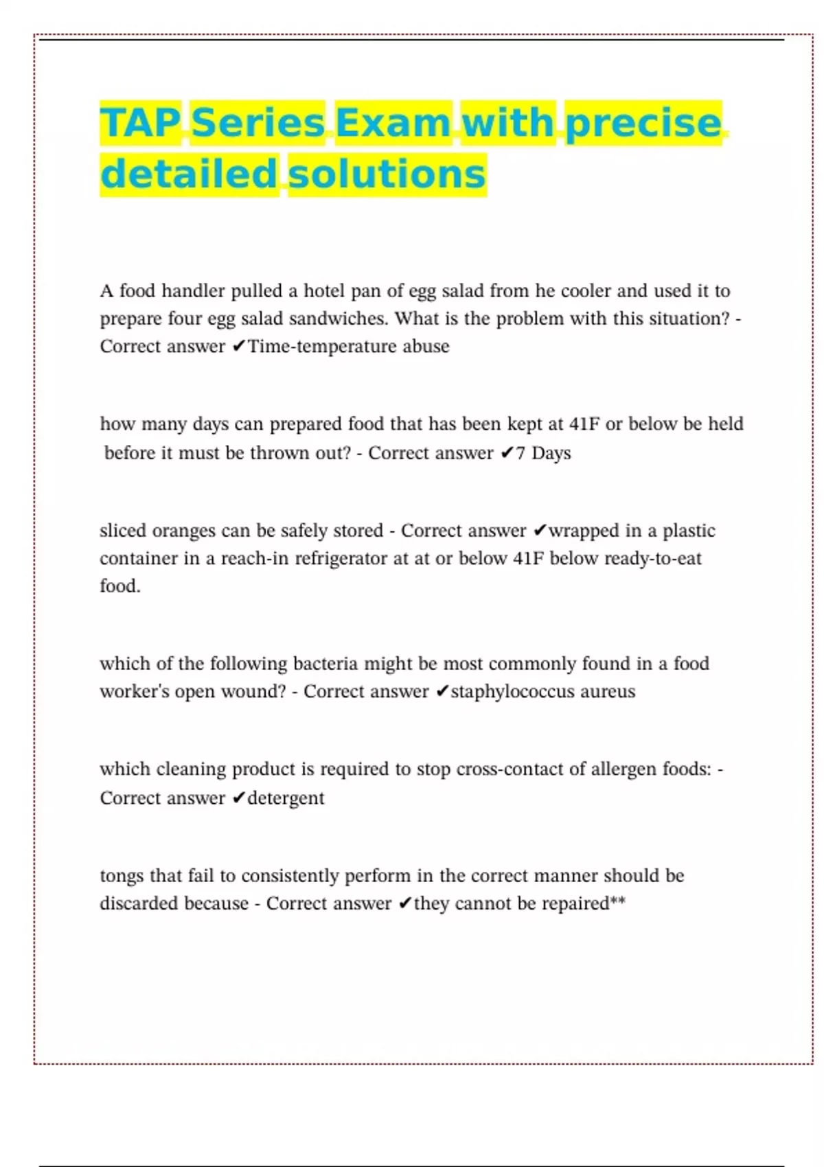 sliced oranges can be safely stored - Correct answer ✔wrapped in a plastic