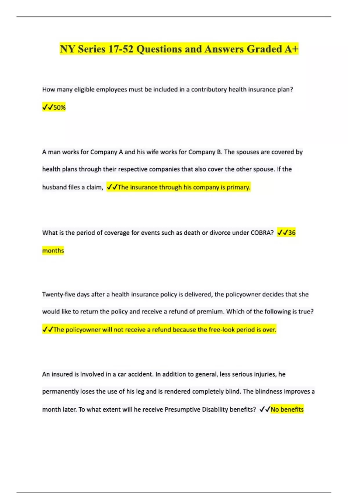 NYS Life, accident, and health insurance NY Series 17-52 Exam Bundle