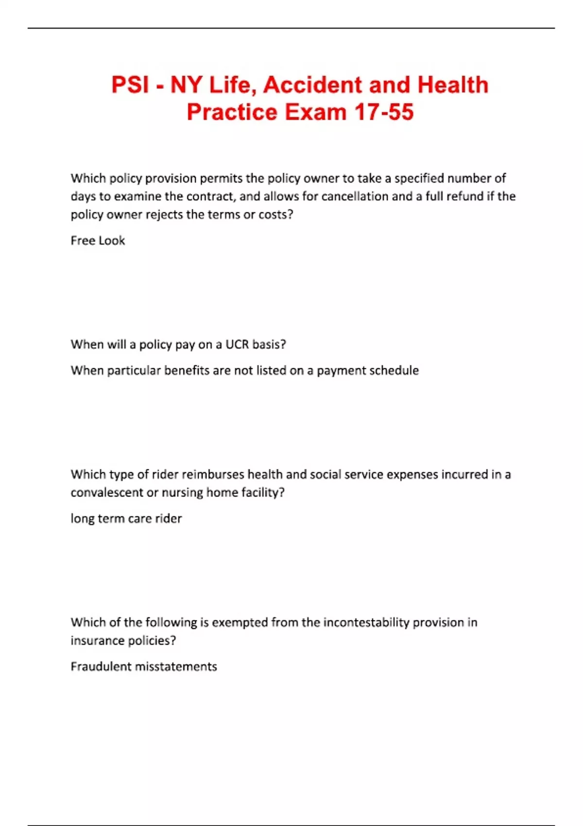 PSI - NY Life, Accident and Health Practice Exam 17-55/ 2025/ 2026 QUESTIONS AND CORRECT ANSWERS RATED A+.