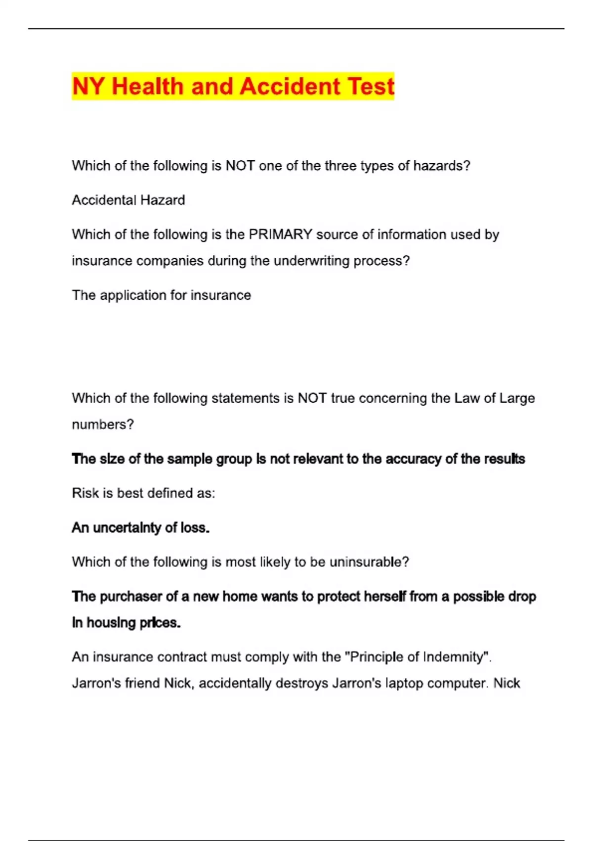 ny health and accident test questions a