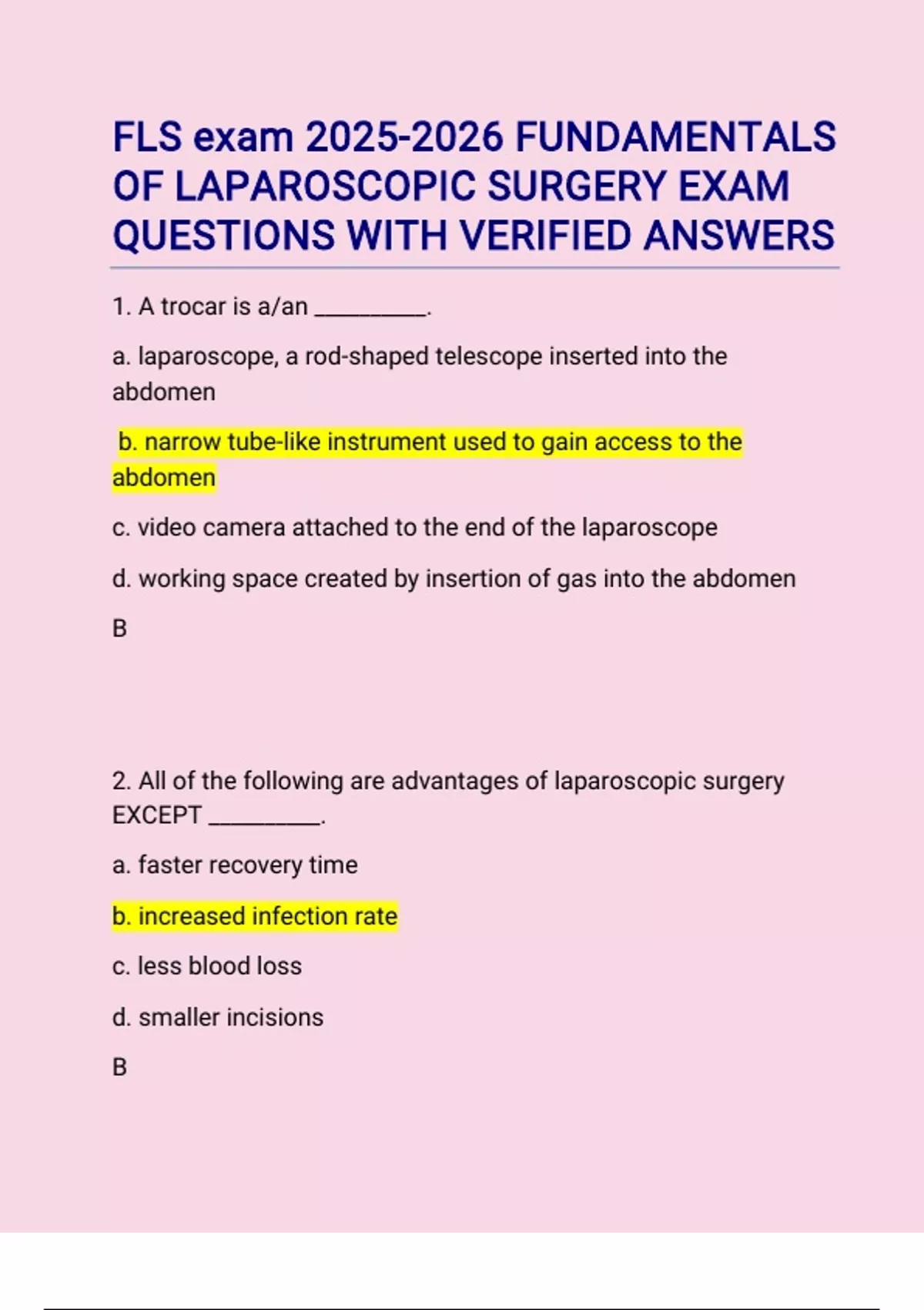 FLS exam FUNDAMENTALS OF LAPAROSCOPIC SURGERY EXAM QUESTIONS WITH VERIFIED ANSWERS