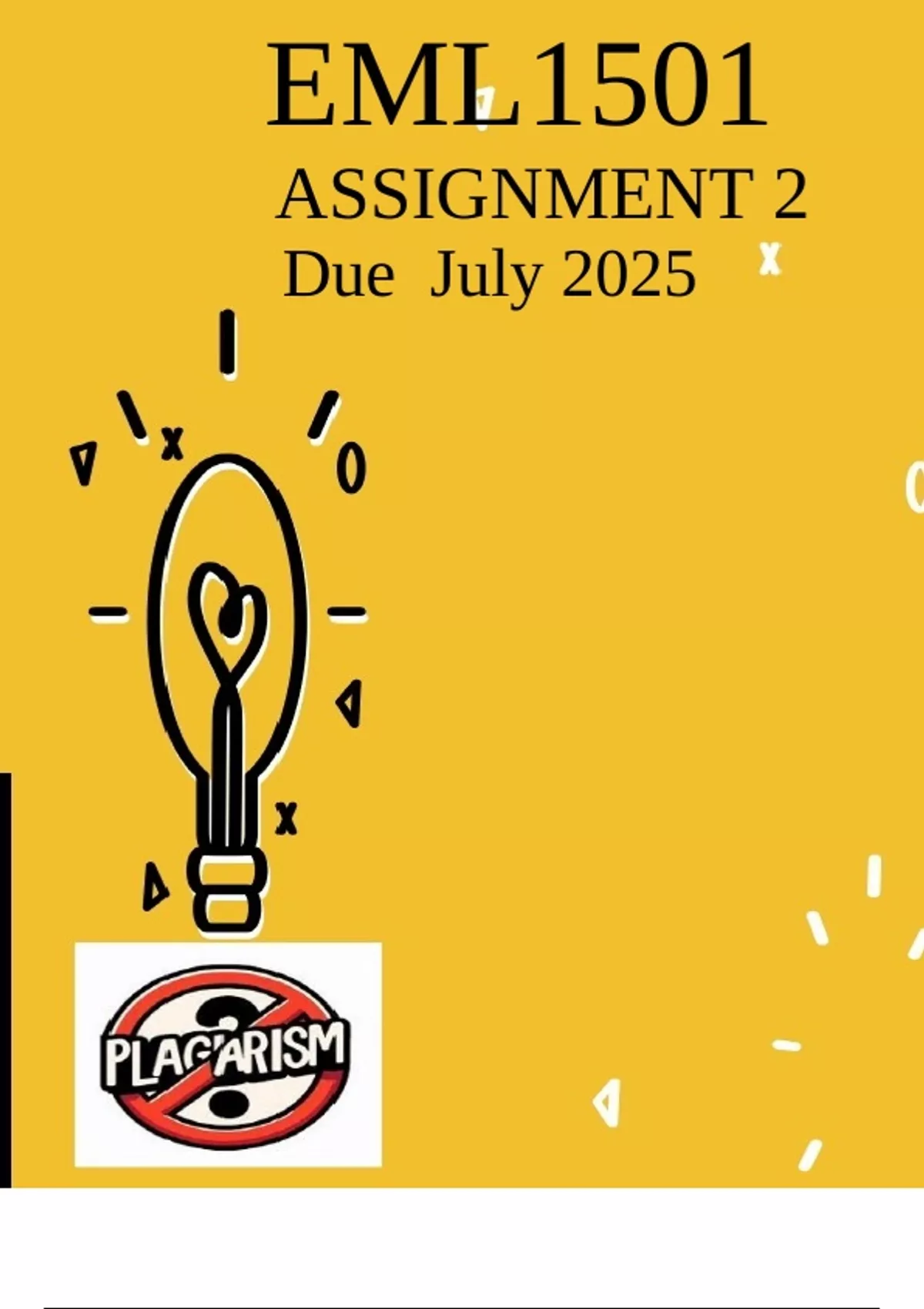 EML1501 Assignment 2 Due July 2025 100% solved answers.Stop starting from scratch.Download your copy today and get a head start.