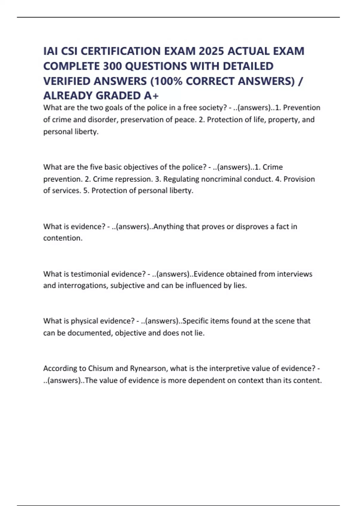 IAI CSI CERTIFICATION EXAM 2025 ACTUAL EXAM COMPLETE 300 QUESTIONS WITH DETAILED VERIFIED ANSWERS (100% CORRECT ANSWERS) / ALREADY GRADED A+
