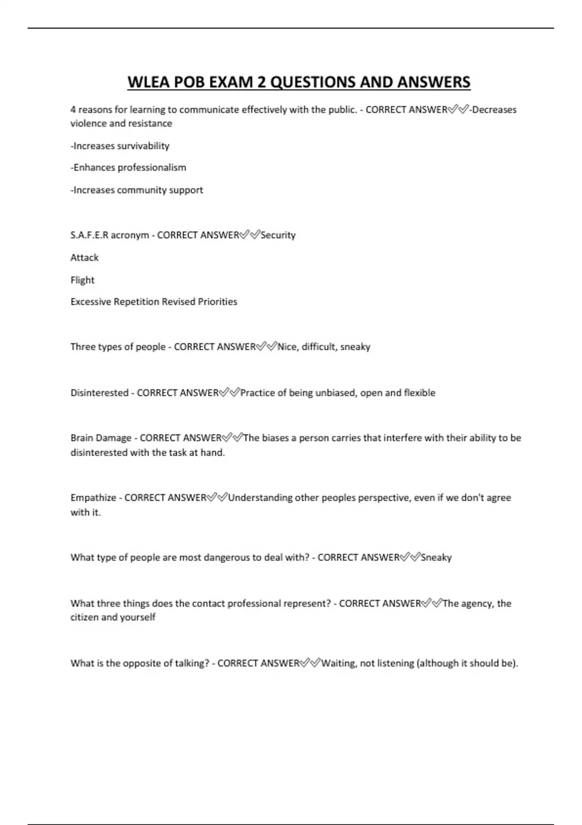 WLEA POB EXAM 2 QUESTIONS AND ANSWERS