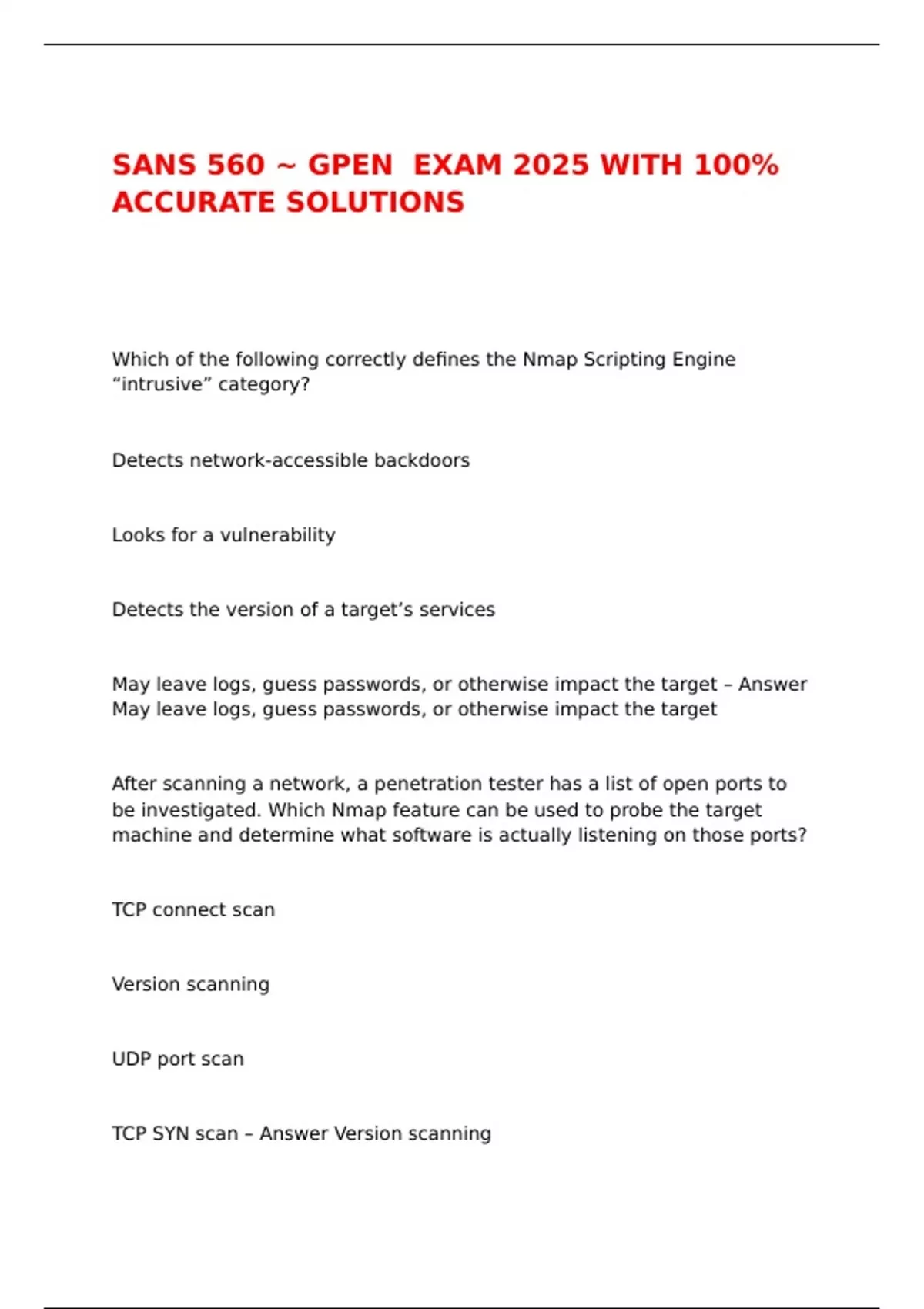 SANS 560 ~ GPEN EXAM 2025 WITH 100% ACCURATE SOLUTIONS