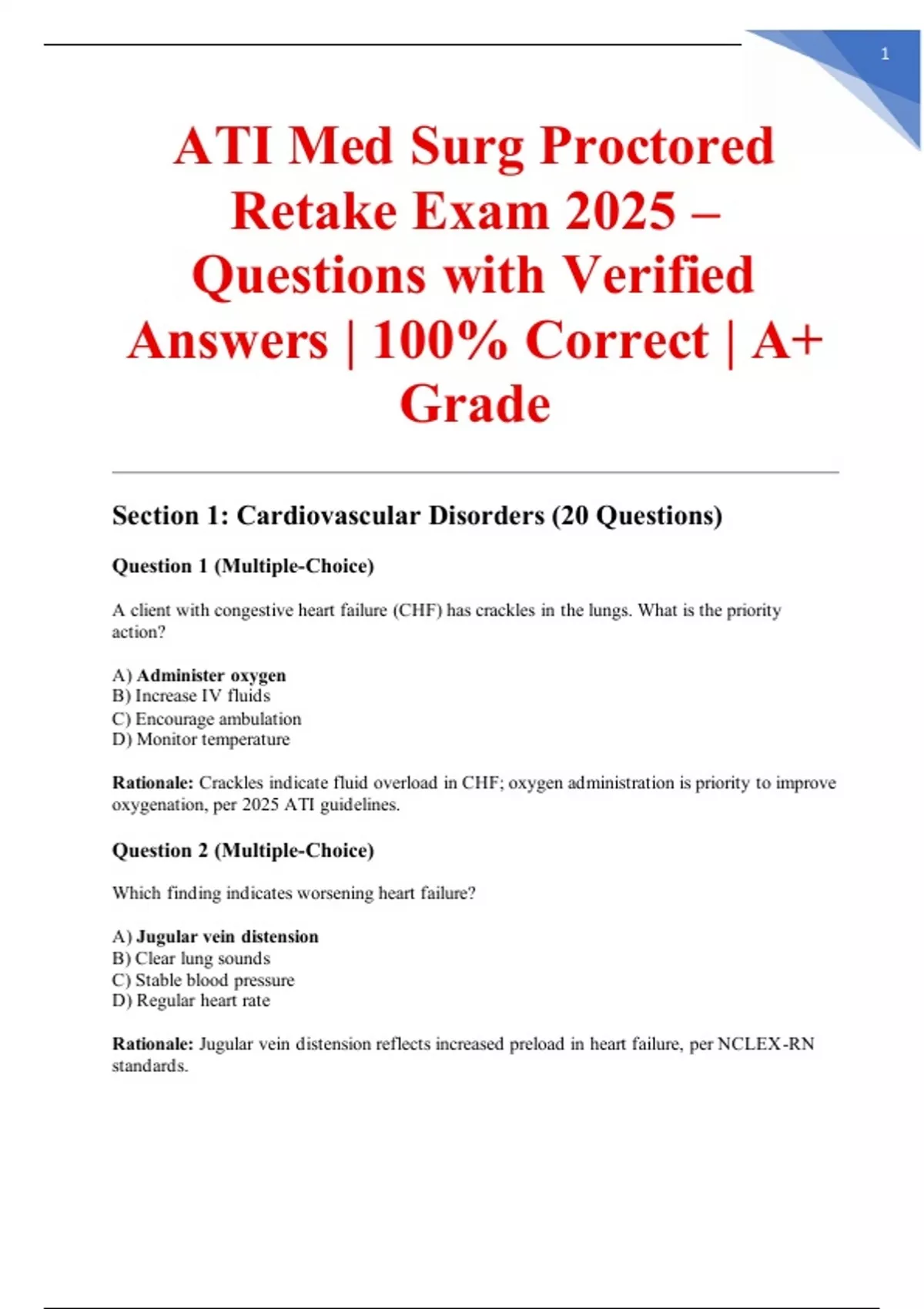 ATI Med Surg Proctored Retake Exam 2025 – Questions with Verified Answers | 100% Correct | A+ Grade
