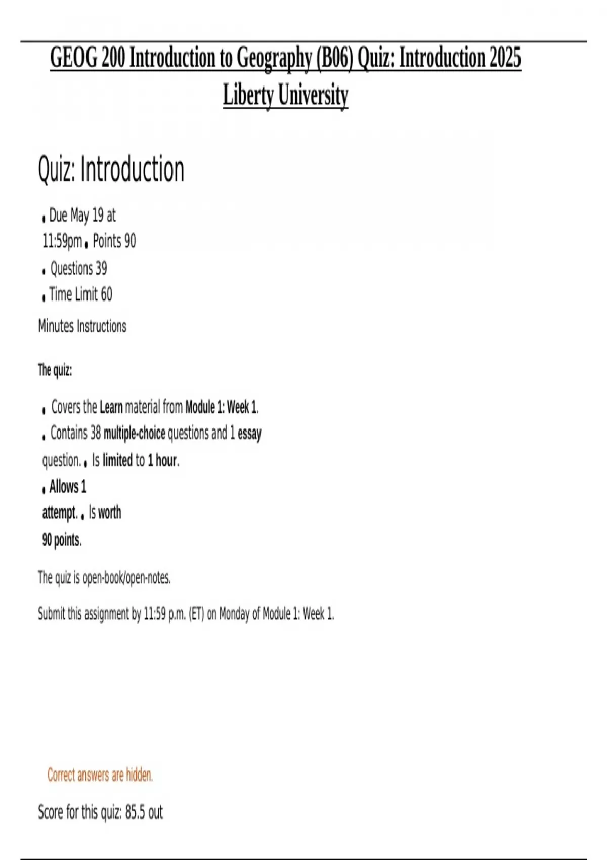 GEOG 200 Introduction to Geography (B06) Quiz: Introduction 2025