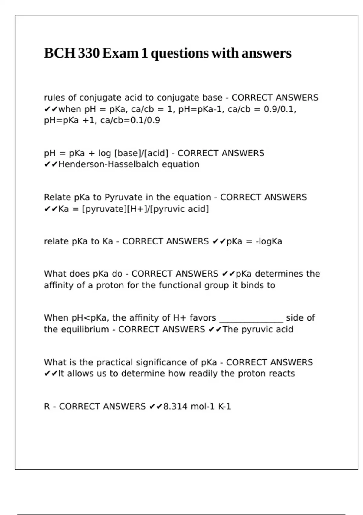 Relate pKa to Pyruvate in the equation - CORRECT ANSWERS