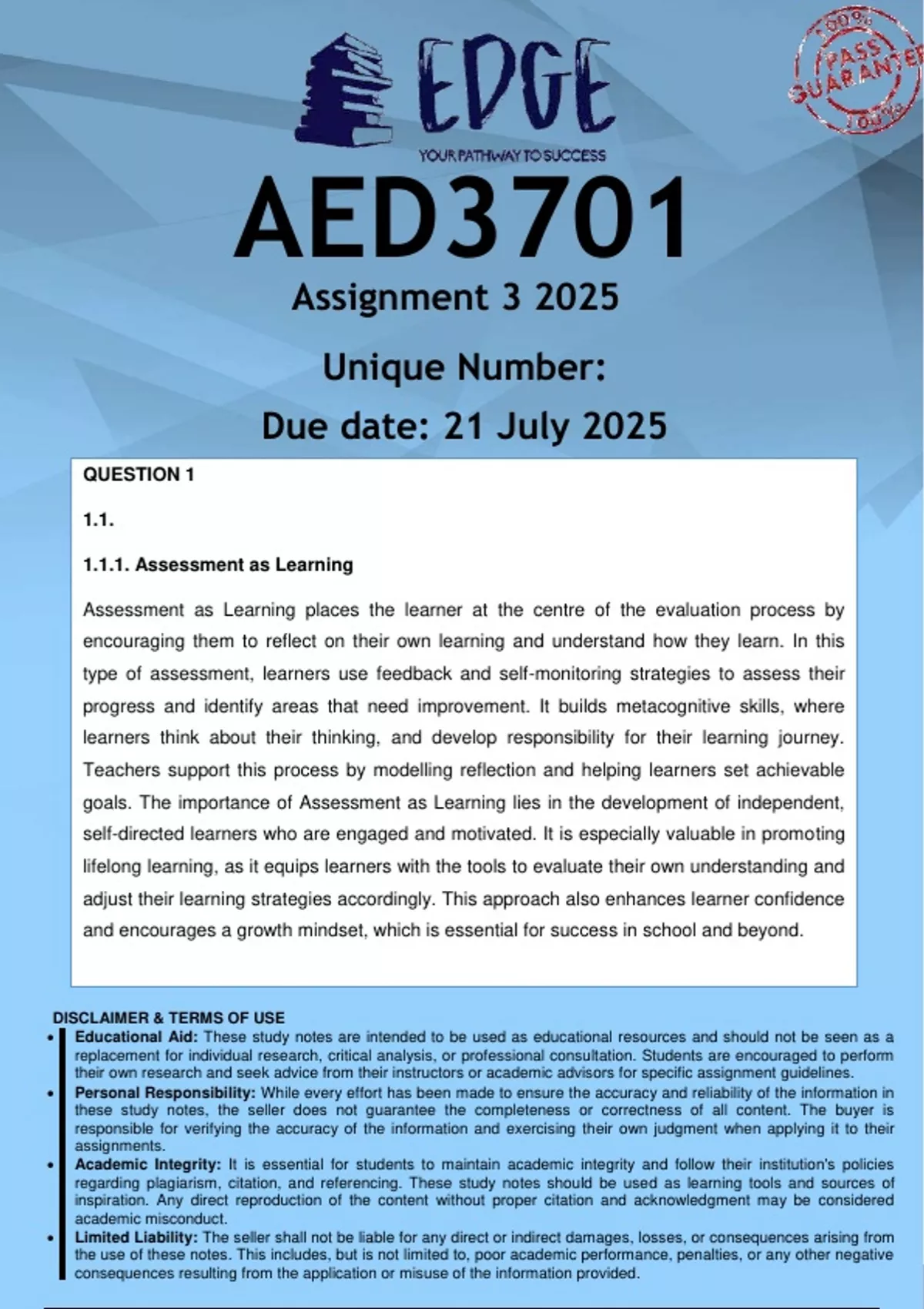 AED3701 Assignment 3 (ANSWERS) 2025 - DISTINCTION GUARANTEED