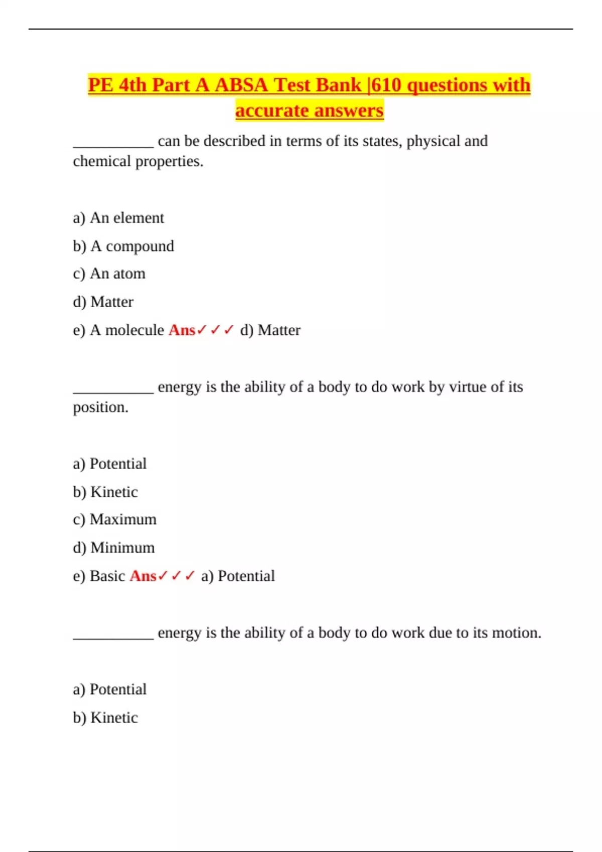 e) Basic Ans✓✓✓ a) Potential