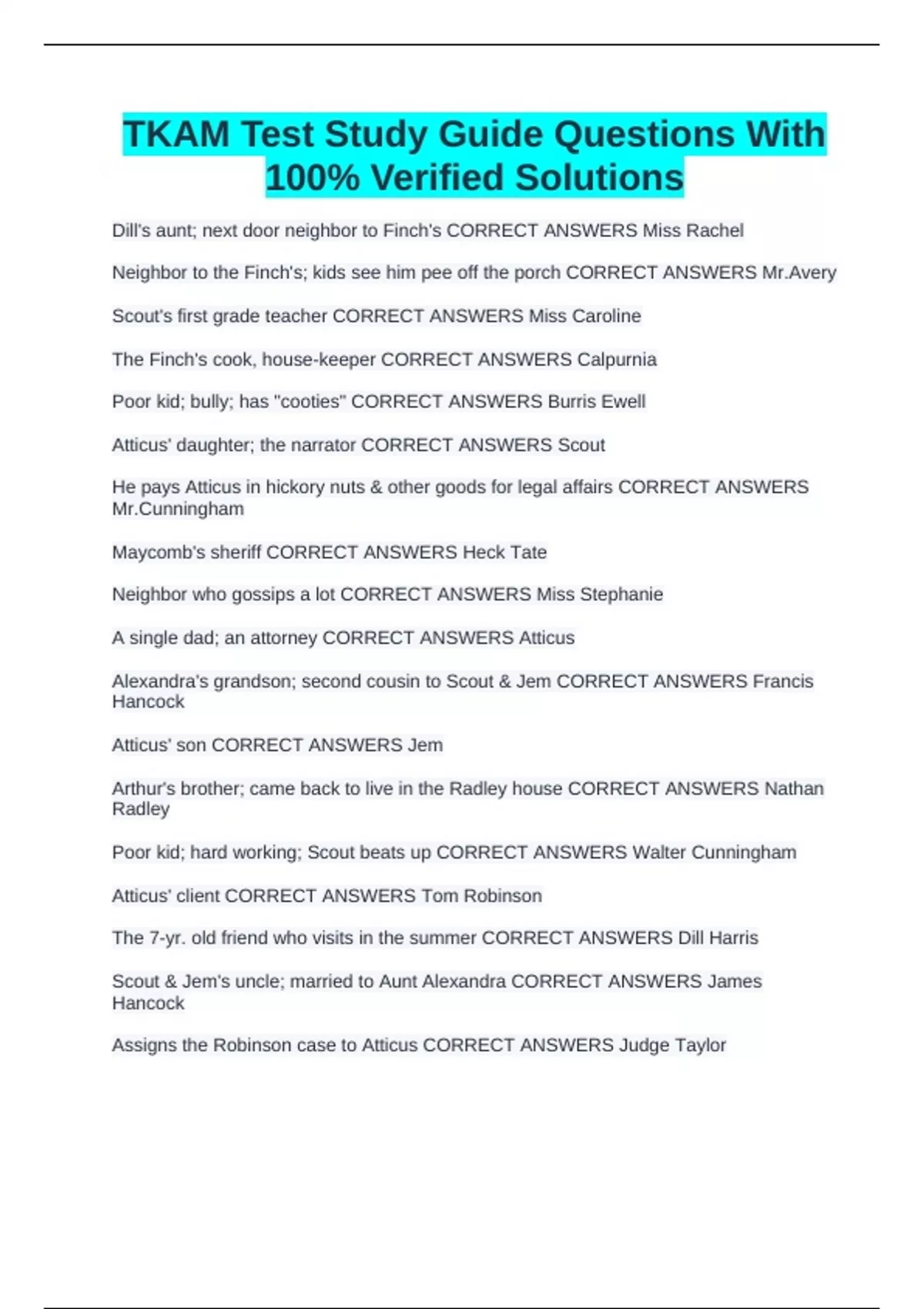 TKAM Test Study Guide Questions With 100% Verified Solutions